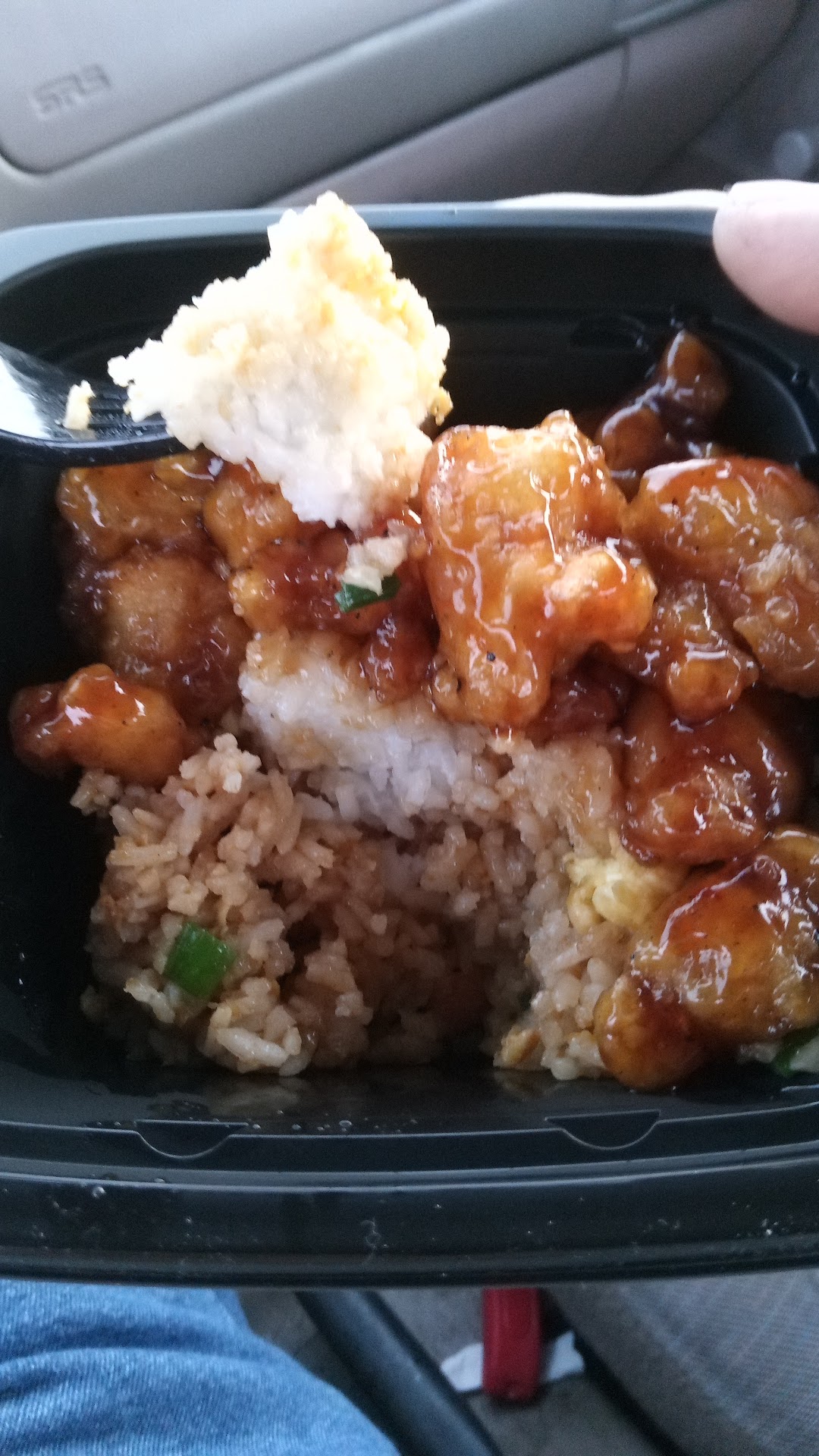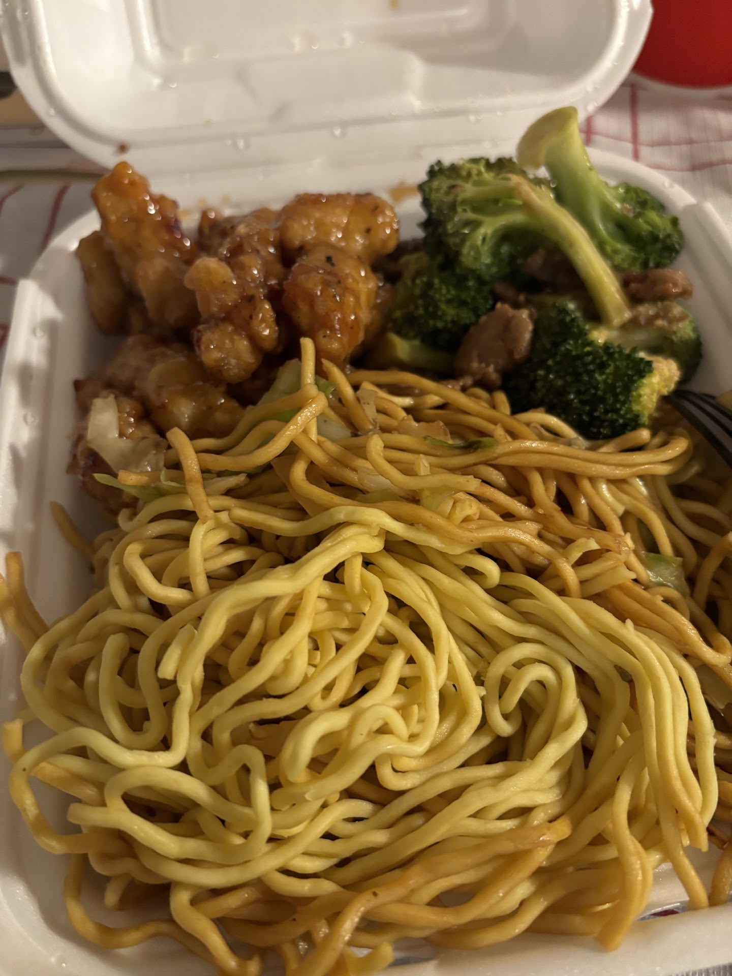 Read moreI ordered Panda Express' plate item through UberEats. the menu item allows your to pick two entrees and two sides. My order was chow mein, chicken fried rice, orange chicken, and one other type of chicken that I can't recall. I think it was kao pao.
