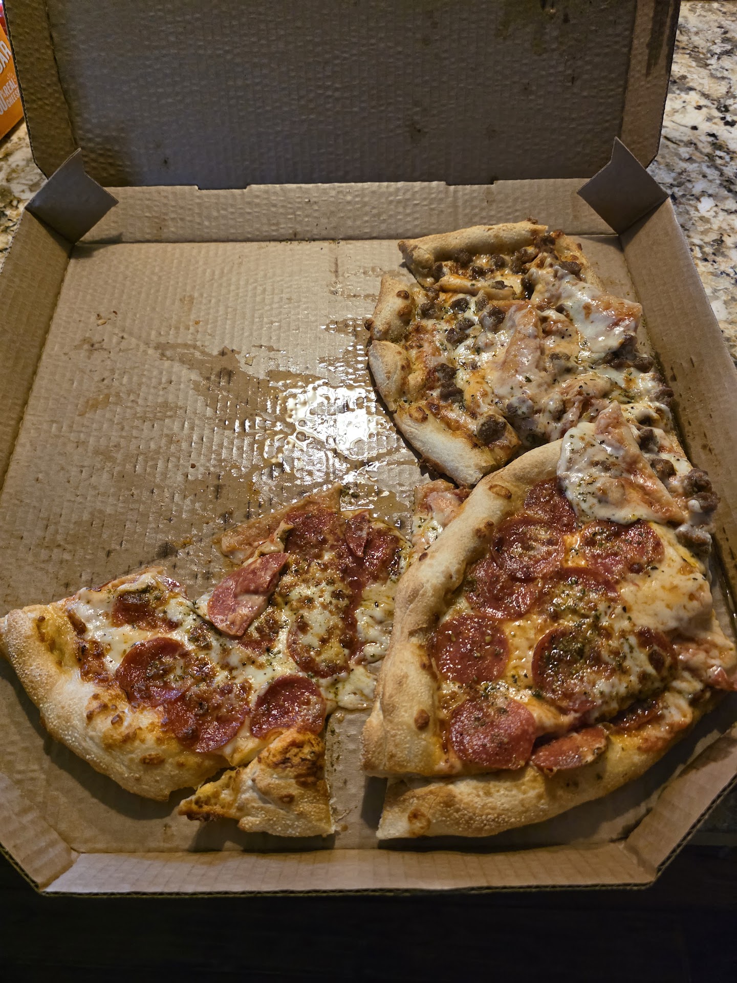 Read moreFirst off, ordered online as I typically do, after the family decided what they wanted the website was unable to add a big box deal order and we had to start over. Then, after three more attempts to remove additional charges realized the deal is for two medium ONE topping pizzas and one regular bread stick. Website needs more guidance when looking at deals or explaining the deal. Ended up ordering a supreme and a beef, meats were extremely sparse, and the request for both pizzas was "crust well done please" and...