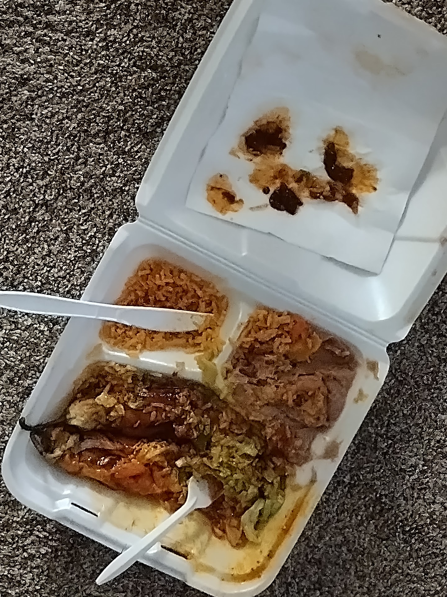 The lesson here: I should've just went to the store and cooked dinner tonight. At least then I know what is on my plate. Who has this kind of money to waste right now? I don't and sure don't want anything else from the kitchen at this place. Just make sure you're okay with weird looking food and you'll be fine eating here. It was probably just the way they make their red sauce but it still isn't visually pleasing to find this buried under the lettuce and rice. If you have any issues with visual presentation of your food, then you probably should avoid...