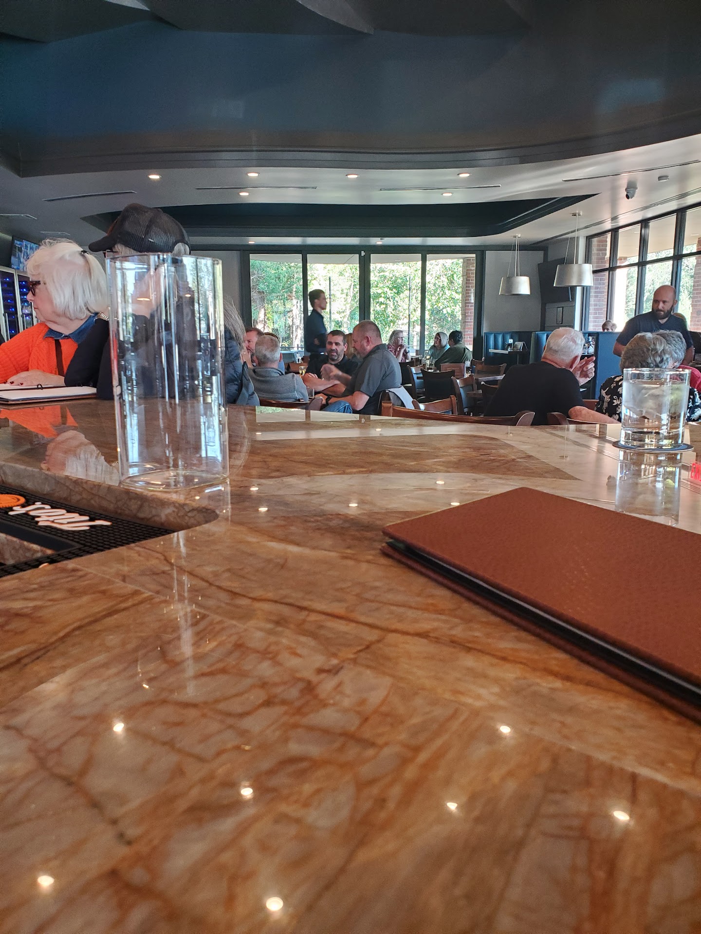 We visited this bar to celebrate my husband's third successful chemotherapy treatment. After a harrowing three months, during which he nearly lost his life to cancer and spent two months at St. Francis, this marked the first time in weeks that he's been stable for two consecutive weeks. We stopped by for drinks after dinner, and the hostess was nice and welcoming. Our server was friendly as well, and although he had to check with the bartender on a few details, we appreciated his effort to answer our questions about the drink menu. The drinks were enjoyable, and while we requested a specific glass for the Grand Marnier, the server explained they didn't have it available, apologized, and mentioned that the bar was newly opened.