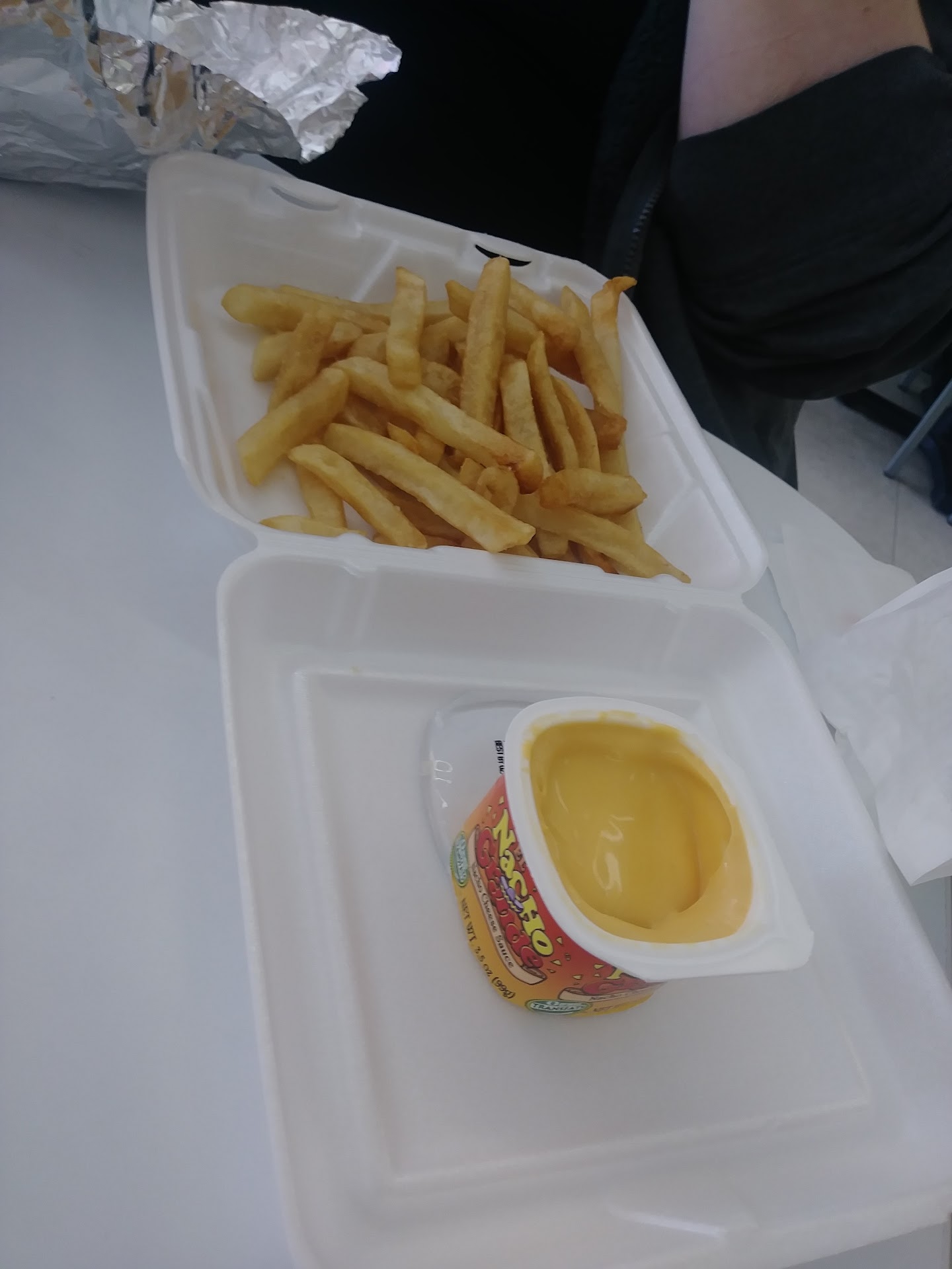 Please put the nacho cheese on the french fries NOT in a fake cup as that shows that the nacho cheese isnt even melted fresh and comes prepackaged.