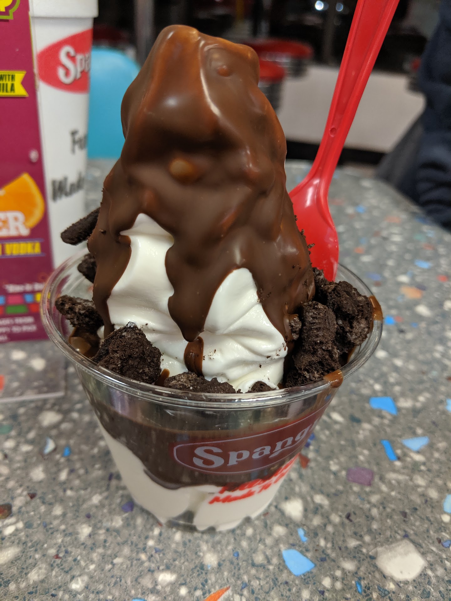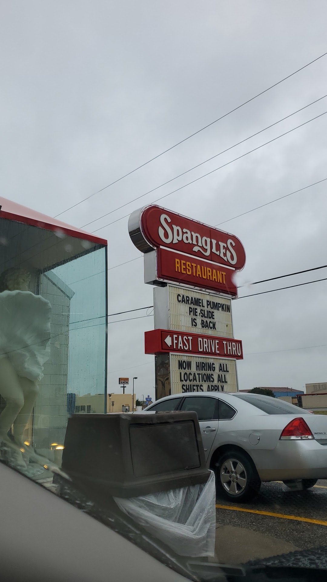 Read moreFor some reason every time I enter a Spangles the first thing I want to do is clean. As you look around the baseboards the bathrooms the counters all the edges it just seems to need a detailed cleaning to me. Maybe it's the color scheme or the cluttered artifacts that decorate the walls.