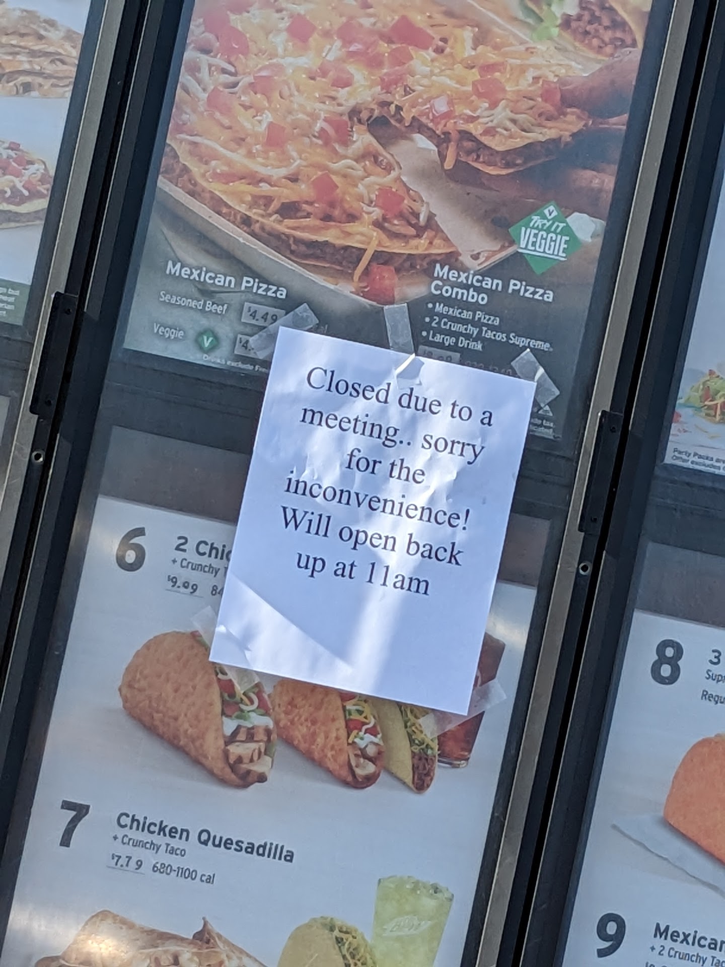 Read moreAbsolutely the slowest drive thru on the face of the earth. 2 separate occasions this week, both times have waited 15+ minutes in the drive thru. Tonight after waiting in the drive thru for 15 mins behind someone. So I pulled in front of the store, went in and after not getting acknowledged for over a minute - asked what the hold up was. They had to retake my order, didn't apologize but told me the customer in front of me ordered empanadas at the window, and it takes 7 minutes to fry them. The cashier proceeded to tell me most people won't proceed with an order when the wait is that long. But they did. So she retook my order. Charged me full price and then asked if she could give me anything. My food. Cinnamon sticks aren't going to fix the lack of customer service here. So I'm still waiting. I'd say 25minutes after I started this journey, I got my food and left. Got home, ate my first 2 items, bite into my 3rd and it's the same burrito I just ate. NOT my order.