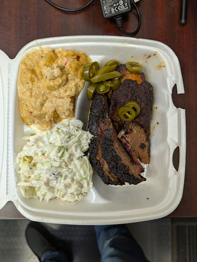 It seemed like too much hassle for bbq. We did try again later. The bbq was okay. There was nothing memorable about it. I should have known walking into an empty restaurant with 2 customers, but I chose to listen to my brother. We like to give people a chance. They had a nice bark on the brisket but somehow it was dry. They do give a generous amount of meat for the price, in my opinion. If you’re looking to feed a few people and not break the bank, you can do it. The sides were definitely not meant for people who like more “seasoned preference”. The macaroni has potential but no. Next time cook your bacon and onions, season them, then add your green beans in. It would have given them more flavor. The cheesy potatoes were the best side but were undercooked. The links were good. The food is what you feed to your friends in the nursing home losing their taste buds, and the bbq sauce could have been promising. The meat was tender, so they know how to marinade.