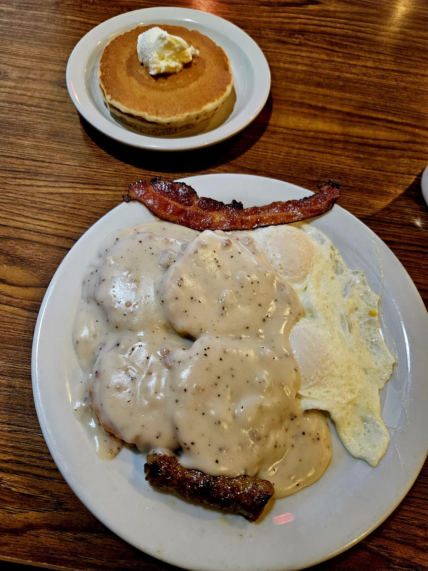Finally, if you're curious, and it was really hard, I only ate one of the two pancakes. Had I known how good they would be, I may not have cleaned my biscuits and gravy plate, but that ship had already sailed.
