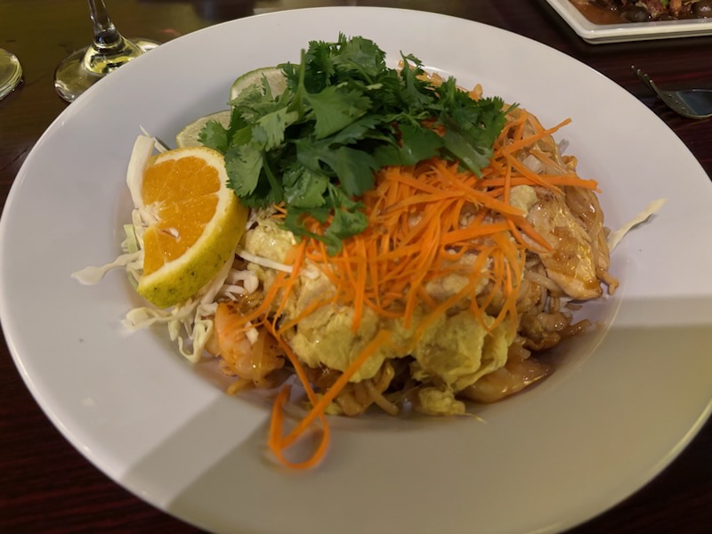 Read moreTuptim Thai is a must try! Starting things off with an appetizer, the Thai Crispy Spring Rolls, here's the description from the menu: Thai Crispy Spring Rolls - Chicken, noodle, cabbage, carrot, celery, and onion in a shell, deep-fried until golden brown. Served with sweet & sour sauce. They were indeed golden, brown, delicious, and certainly fresh from the kitchen, as they were too hot to eat right away. The menu states a serving of two, but we got three in our order, Jennifer and I split the third, they were super tasty! For her entree', Jennifer went with Pad Thai Gang Dang - (here's the website menu description) Chicken and shrimp pad Thai in creamy red curry sauce with roasted peanuts over fresh cabbage and bean sprouts. Topped with a fried egg, shredded carrot, and cilantro with a fresh lime wedge on the side. I went with the Chicken Thunder - Chicken breast marinated in house seasoning with a touch of white rum, straw mushroom, baby corn, fresh ginger, and scallion. Both dishes were excellent, and sampling from each other's dish, we both commented, "I should have ordered yours!" When ordering, you get three heat options, mild, medium, and hot, we both went medium not quite knowing what level of heat to expect. I usually go mild when trying a place for the first time, but the medium was perfect, packing flavor followed by a bit of a kick in the finish, it was very nicely balanced heat, complimenting the tender chicken and vegetables. The curry sauce in Jennifer's dish was stellar, a sauce done so well you didn't really need the squeeze of citrus to brighten it up. The dish was Gang Dang delicious! Located at 2121 N Rock Rd #300, Wichita, KS 67206, I would describe Tuptim Thai as a restaurant with a relaxed and casual atmosphere with a touch of elegance. William, our server was all smiles and very professional. Other members of the staff were attentive as well, making for a great dining experience, in other words, the attention to detail was excellent, all the 'i's' were dotted and 't's' crossed. $pend Wisely My Friends... ~ Mike, Bachelor...