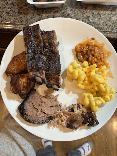 Ā Ā Ā Read moreStopped here for supper and shared a three-meat plate with my wife: ribs, moist brisket, and turkey, with potato salad, green beans, and mac and cheese as our sides (we ordered an extra one). The ribs were quite good, a bit of chew, good rub, good texture. If I were nitpicky, I'd call them slightly overdone, but they weren't fall-off-the-bone and they get good points for that. Brisket was excellent. Why everyone doesn't offer a moist brisket option I don't know. I also don't know why anyone would want anything else. It's just friggin delicious. Anyway, super good texture and flavor, rub coulda come off a bit stronger, but I can't complain. Turkey was decent, I think my main issue here is preferring larger chunks to slices, but the flavor and texture was excellent. It's easy to over-smoke turkey, and they didn't do that. Sides were so-so. I get the impression that their focus is the meat, with the sides being mostly serviceable. Of the three, the mac and cheese was the best. Overall, quite good and...