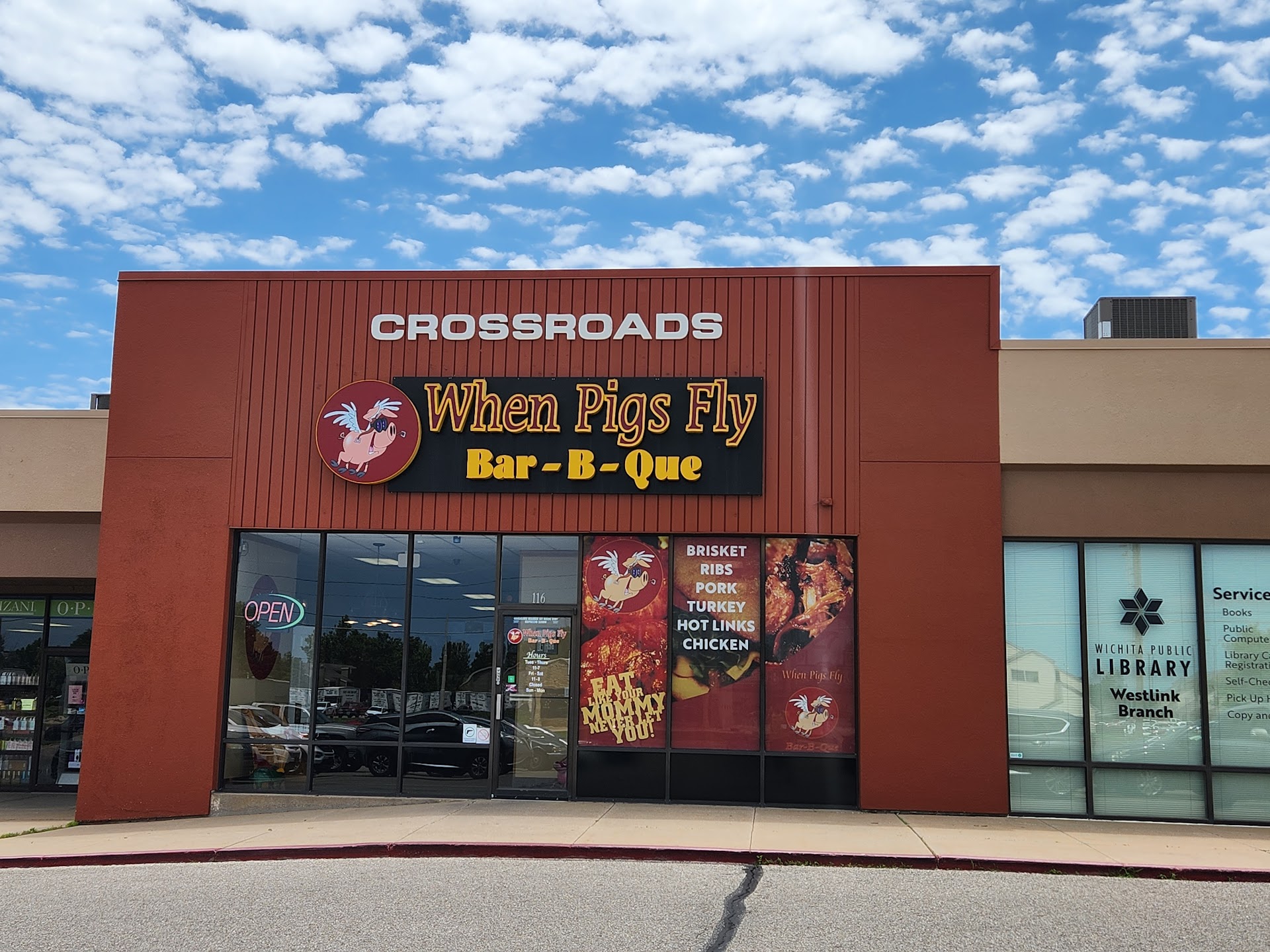 Read moreThe only BBQ joint worthwhile in Wichita! My husband and I are foodies, if it doesnât smell good look good or taste good most likely, we are not eating your food! We were checking out places to eat in Wichita for overnight stay. My husband was researching all of them and looking at their reviews. He kept going back-and-forth between two places and found a review that said this is the place! When pigs fly! When we walked through the door, not only could you smell all the aromas from all the meats being cooked, but you got the sense of walking into a family establishment. The people were fantastic! They donât serve up a tasting platter, however, the owner had the kitchen staff put a few pieces of each meat on a plate for us to try. We were sold!! We ordered the family pack and got a half rack of ribs on the side with that, hence the amount we spent LOL. We got the ribs, the brisket, the brown sugar glazed ham, and the jalapeño cheddar sausage. Our sides were the macaroni salad, and the baked beans. We ate until we couldnât eat anymore and we still had food left over to take home! The sweet tea is so good, it would make any southerner proud to drink it! if you donât at least give them a try, you are missing out on the best barbecue joint we have found between four states so far! They do catering for big and small events, their plates and servings are plentiful, again the people are fantastic, and the owner, you wouldnât even know he was the owner. He is humble, he is jovial, and the rest of his staff absolutely adore him, and adore working with him. Not only are we leaving with full bellies, we are leaving with leftovers that are to die for, and in great spirits for having enjoyed eating here. Thank you for serving us, we will be back!! be the early bird and get good servings. If you come later in the day there is a higher chance of them running out of stuff. As it would be in any great food establishment. The meat by itself with the smoke flavor, and the spices that they use are phenomenal, even without their house made sauces! For us, when it comes to bark on smoked meats, we donât like a whole lot of bark. So for us, the amount of seasonings and bark that was on the food was perfect! We donât typically give out five star ratings, unless the establishment is well deserving. When pigs fly is definitely worthy of a five star rating in...
