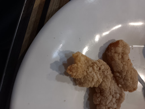 I wanted to ubmit a few photos of this Greek tragedy. The first photo is a piece of chicken, or that's what they told me. A piece? Were they going for a chicken nugget? The second is what passes for bacon. Did you see the rubber in it? I sure tasted it. Renee Steven's is jealous that they got more rubber in a piece of bacon than Spangles could get in a burger. The last is of a waffle. I can verify this because I'm waffling on whether I'm hungry enough to eat it. Let me repeat myself. This is so far beyond bad that the health inspector should be called.