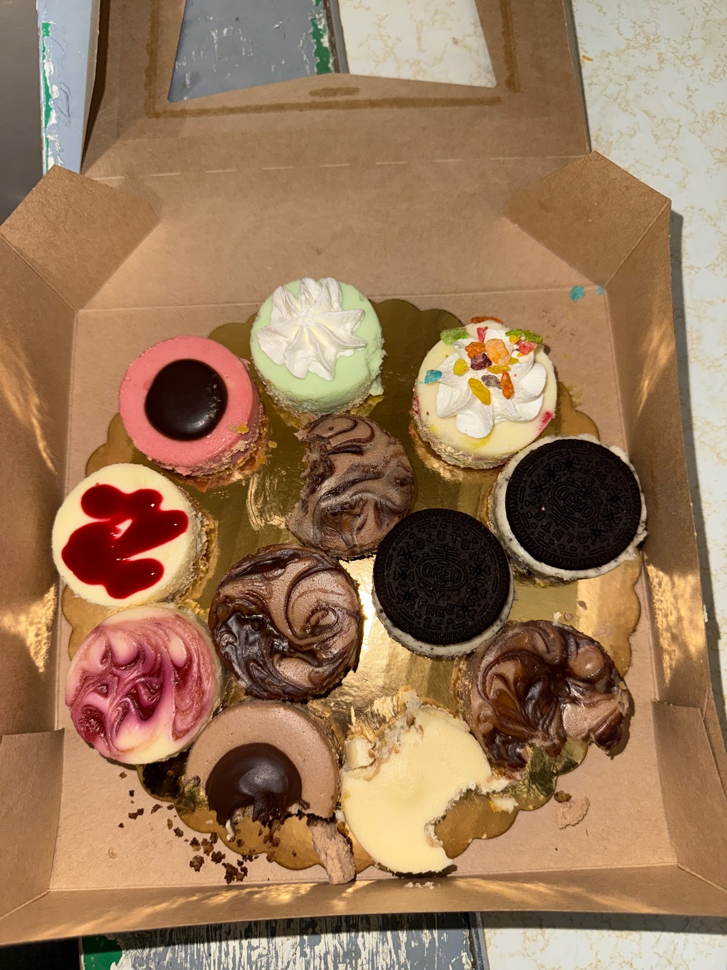 Driving by the sign caught my attention. I looked them up & was intrigued seeing they do a gluten free cheesecake…I love cheesecake!! When reading their story I knew I had to try them out! My son & I randomly decided to pop in one evening & I immediately loved the energy. Super cute spot! The gentleman behind the counter welcomed us & was so nice, patient & accommodating after we said it’s our first time in there. I started rambling about how I’d read the family’s story & was super excited to try it out & he smiled from ear to ear. My son asked are you the owner? He said he was & I was so happy I got the opportunity to have his help on my first visit.We decided to do a mini dozen to try different flavors. We chose key lime, fruity pebbles, cookies & cream, chocolate peanut butter, OG, chocolate, white chocolate raspberry, raspberry limoncello, & chocolate covered strawberry. Doubled up on a couple fave flavors. We were blown away at how every single one was so delicious! The flavors of each was spot on to what you’d think & even better than you’d think. I told a couple friends who ended up loving them just as much with different flavors - kings cake, tiramisu, crème brûlée…& one of them doesn’t even like cheesecake so there you have it!! It’s so good!!! ! Everything was reasonably priced. I love that it’s a small family business & love to support local. Highly recommend you check...