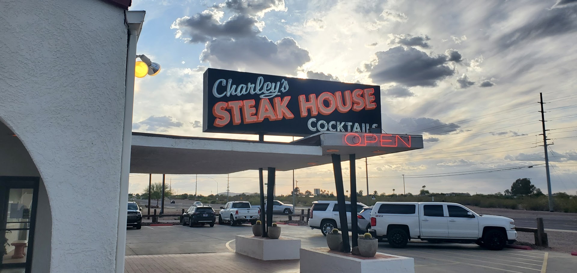 My girlfriend and I decided to check out Wickenburg as we have never been there other than just driving through on our way to another destination. Based on recommendations from friends for a steak house, we decided to go to Charley's. We arrived at Charley's at about 7pm, we were greeted by a hostess who immediately asked if we had a reservation. This caught us off guard, we immediately had the impression that we may not get seated. The hostess asked a lady where we could be seated and emphasized we didn't have a reservation. Once we were seated the service was very prompt we were given bread with butter and our drinks with in a few minutes. From there our waitress was attentive but she had to go get answers for most of the questions that we had about the menu as it had no descriptions on the menu other than "Ribeye" for instance. No description of portion size for any cut of meat just the name of the cut of meat. Later the waitress admitted that she was new, and even with that fact she did very well for it being her first night. Overall the experience was okay. Nothing negative to speak of. Some personal observations though, if reservations are the preferred method of being able to eat here then it should be stated, if it is not then don't make it such an awkward situation that someone doesn't have a reservation. The overall atmosphere to me does not match the price. The furniture is only tables and chairs no booths for the price I would have liked to see a more intimate setting, lower lights and at least some booths to seperate the tables. Price wise - we had 2 meals a Ribeye and (6) shrimp, and a New York strip with (4) Jumbo Shrimp, and 1 tea. Each meal came with soup or salad (the salad was very generic and had a tremendous amount of dressing on it), choice of beans or corn (these were also very small portions), and a choice of baked potato or fries. We both got a baked potato and it was adequate in size. The meal includes a free dessert each which was a small cup of ice cream with hot fudge or caramel topping. The servings of ice cream was the perfect...