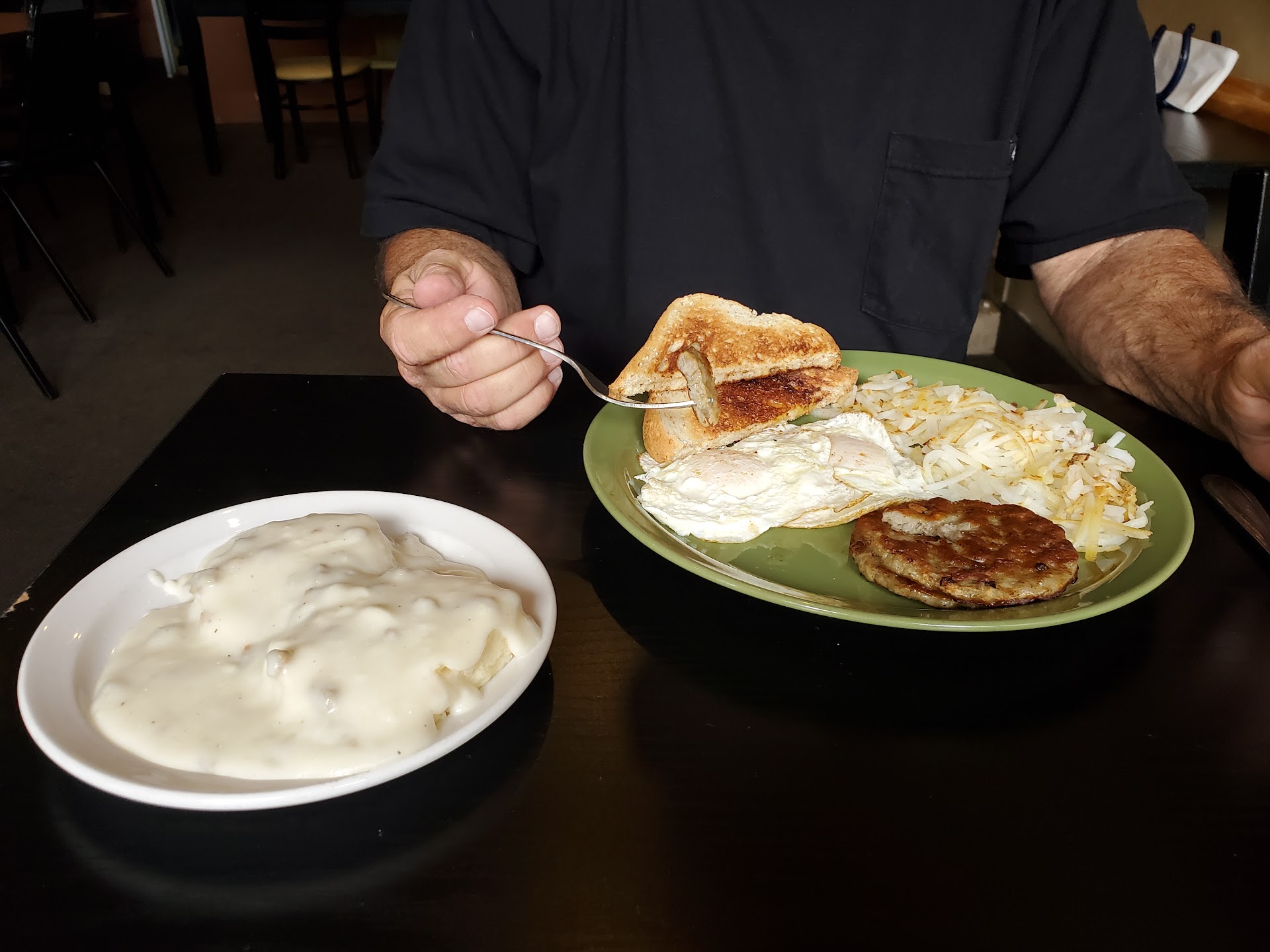 We drove up from the Phoenix area for an appointment. This place was recommended. So disappointed, I asked for my veggie sandwich to be on sourdough and it tasted like normal bread, no mayo but yellow mustard and quite a bit (it wasn't a hot dog) and the raw red onion was sliced really thick. It was basic. Mostly onion, along with some tomatoes, and greens. They had no orange juice. I ordered a cup of hot tea. Only once before in my life have I tasted stale tea, I think dried tea leaves last a long time. Previously it turned out the tea bag was years expired and I suspect this cup of tea must have been, it tastesd awful. I only took two sips. The second to confirm how bad it was. I should have sent it back but we were in a hurry and I had just written the place off. The worst thing is I had a very upset stomach the rest of the day. Lots of time in the bathroom. It's hard to imagine it was two sips of tea (I didn't like the sandwich but it didn't taste stale) and I'll never know,...