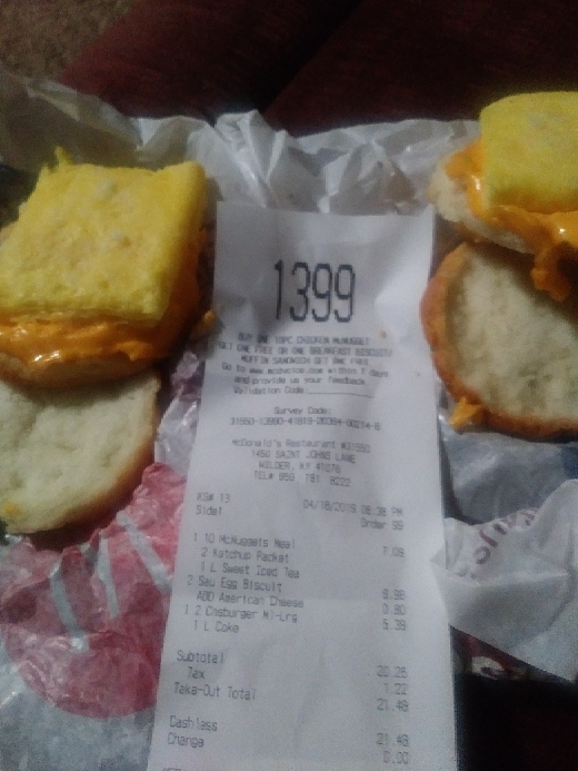 Read moreWORST McDonalds Location In Kentucky!!!! EVERY SINGLE TIME I visit this location thereâs a problem. My last encounter took the cake! So first, I took the drive thru in hopes to have a decent lunch at least and after I place my order I was told to âpull up to drive one.â Thatâs not the bad part. So after pulling up to wait, at least five cars passed by with their orders with ease. (As Iâm waiting Iâm wondering what the waits about, I mean maybe Iâm waiting on the chicken nuggets) (I ordered a chicken nugget meal and quarter pounder meal) so long story short I get my food and go home all the way in fort Thomas and my burger is undercooked! Not to mention both large fries were cold from the jump! I had to go all the way back to this location to be given a hard time about getting my money refund after the manager seeing this pink burger!!!! WORST McDonaldâs moment ever and this location wonât be visited again and I wouldnât suggest it!!!! 0...