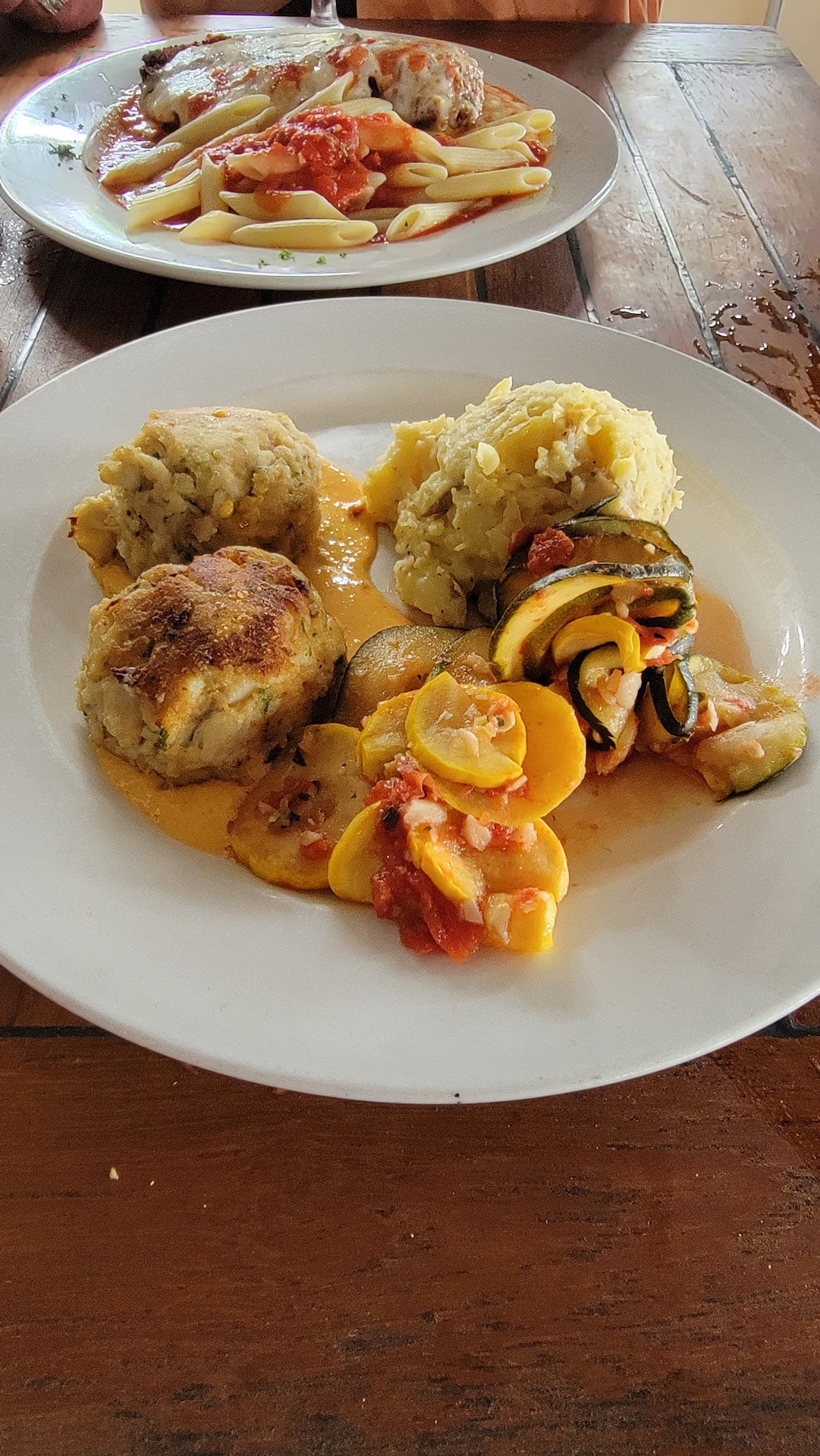 The Shrimps were not over cooked (however my personal preference would be to remove the tails from shrimp but that's just me when eating a dish with cooked shrimp) the scallops were incredible and cooked perfectly (which some places could easily over cook them) the lump crabmeat added to the flavors.
