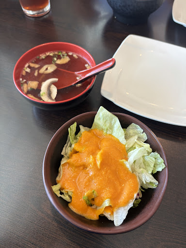 Read moreWe didn't have to wait long without a reservation. The place was very busy with about 15 people in front of us. Amy the hostess was very busy taking customers, payments and cleaning tables. Mandy was out server....she was busting her buns! It looked like there were only 2 servers in the restaurant...but they kept up. We all ordered hibachi that came with the clear soup and salad. I ordered steak and shrimp. The pieces were very big but cooked how I requested...medium rare, however the steak was a little tough. My father in law ordered steak and chicken and said the same thing about the steak. My husband ordered the filet and said his was not tough and cooked to taste. Our teenage son basically ate everything but his veggies. All dinners came with the yum yum sauce. We all wished there was a mustard or ginger sauce available. The meal was not a 5 however, I would come again and would recommend it. I was really impressed how busy it was and how fast the food came out.