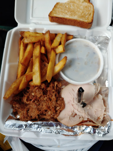 ย ย ย Read moreStopped in for BBQ late lunch.. it wasn't to crowded, the young lady at the entrance was not friendly and pretty much ignored us.. thankfully a waitress walking by saw us and offered to seat us..after sitting 10 min's a waitress finally came over she was polite and to the point ( customer service was a bit lacking all around) but after reading the reviews I was excited for some good food..it was not as good as others experienced, my food less than stellar my companions was much better... I had the chopped pork plate .. it was more fat and burnt hard pieces that wasn't edible..the 3 or so bites I could eat that weren't burnt had a good taste.. the Texas toast was good.. the Mac& cheese was cheap cheese sauce style not enough noodles and I felt like I was eating a bowl of cheese sauce.. after a bite I stopped..the baked beans were great.. tried the fried corn nuggets..they were gluey tasting.. my companion enjoyed there meal better than I did.. he had the ribs which I tried ( 100% better than the chopped pork bbq I had) the collards he had on the side were delicious but was on the small portion size,they were seasoned perfectly.. he agreed the Mac and cheese was a bust.. Overall an expensive meal that wasn't worth the price.. just not enough good food to...