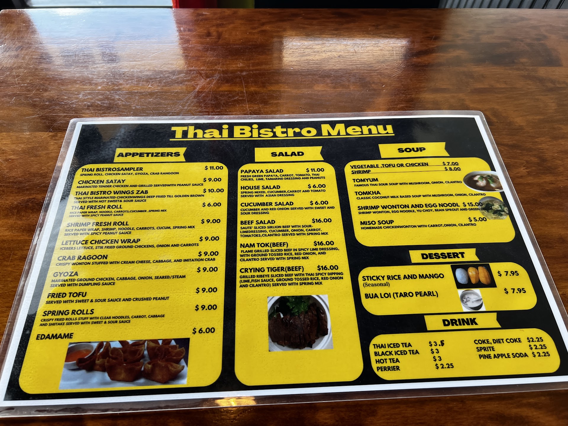 Read morePaid 2 visits to this place before. 1st time, with my bf for a date, we got 2 typical thai dishes, 1 pad thai, and then a rice dish that had an abundance of green beans. While mine was more enjoyable than his dish, it wasnt anything more than average or below that. The price for what you get is a little more than its worth. The dishes arent real intricate nor did they coat the dishes with sufficient sauce. It was very dry. Lacking in flavor. Tonight, I tried the seaweed salad which again the price was about $1 more than usual for other places ive been too, and there wasn't anything special about it. The 2nd thing i got was the curry chicken soup underneath the salad options... And let me tell you... Big mistake..it does not taste like curry, i doubt theres curry in it, and it smelled and tastes like fungus feet. It had chicken in the title but there were not more than 3 chunks of chicken. Definitely a rip off. I would not waste your time or money at this place unless youre looking for over priced...