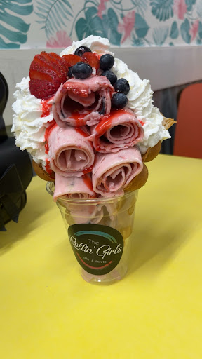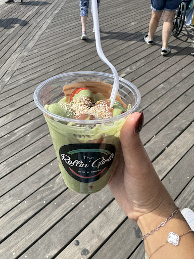 We had never had rolled ice before, and let me just tell you itâs better than it looks, and it looks pretty darn good! My daughterâs friends found this place when we were in Wildwood, a few weeks ago for beach blast. She really wanted to try it. So we did, first we picked our flavors and toppings, they were so helpful in explaining how the flavors are made and recommending toppings! It was such an interesting process to watch them make the ice!!! My family all got slightly different items, all rolled ice though. When mine came out the whipped cream fell all over the floor from the counter to the table. They were so nice about it, and even hooked me up with some new fresh whipped cream! The flavors far exceeded anything I could imagine!!! It was an experience, and a delicious one at that!!! I regret I did not take any pictures of mine to share, however my daughter did! She got the vanilla base made into chocolate rolled iced with Nutella, and bananas. She got hers topped with whipped cream, a drizzle of Nutella and some sliced bananas under the whipped cream, my son had cookies and cream with whipped cream, and I had the vanilla base rolled ice also with Nutella and bananas. It was excellent!!! I highly recommend trying Rolling girls if you are at the Wildwood boardwalk!!! What a delightful, delicious treat! Thank you Rolling Girls for the tasty treat and wonderful...