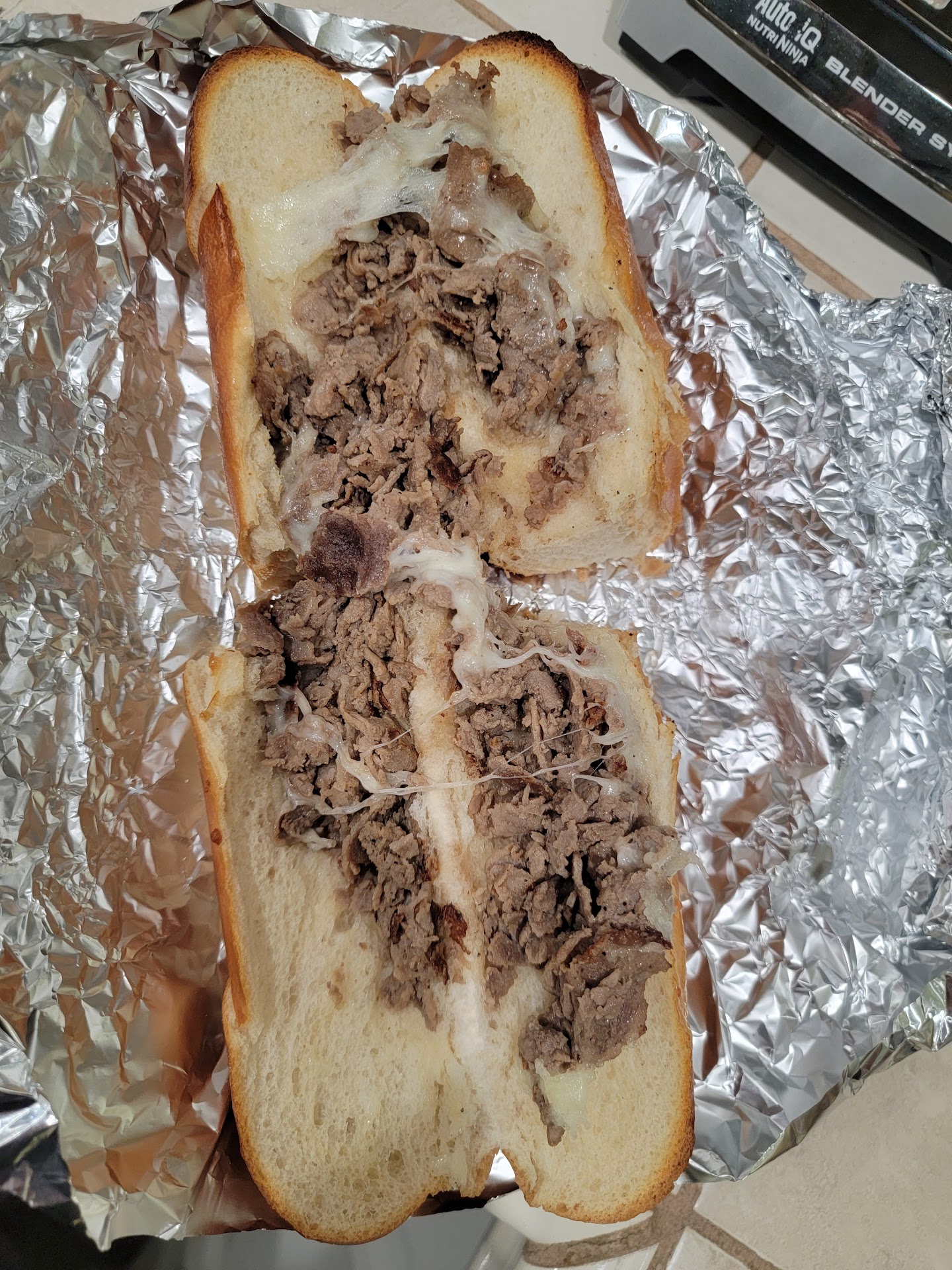 But the cheesesteak.... what in the actual French connection shirt did I purchase. Tiny, bland, but atleast not dry, which isn't saying much when you squirt it with water to melt the cheese. So it was one slab of meat on a roll. Meat plated one inch from the ends of the roll was the first indication of a fun time. So for reference after cooked weight is usually x.75 of pre-cooked. Trying to keep it positive here so go you 4oz cheesesteak you! Don't remember being able to stuff all of a steaks meat in a 2.5oz souffle container before. First time for...