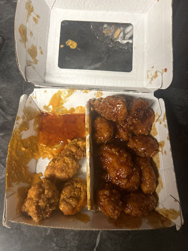 Terrible. Downright TERRIBLE. First off I try over and again with the place because it’s good in house but takeout is beyond awful. Every single time without fail you will walk in to an empty takeout stand and wait 10min at MINIMUM for a takeout worker to come take care of you. The one time it took over 15min so I called the manager over and as I’m trying to explain to him I waited 15min to even get service and it’s an ongoing thing then you are rudely greeted he looked at me like I had 6 heads and kept saying “oh ok well you got your food correct?” I said yes and he said “ ok I’m just not understanding the problem” and I had to tell him it was terrible customer service and he still didn’t seem to comprehend. Anyway tonight I got the BOGO Boneless bites supposed to be 20 of them split between Dry/No sauce, MILD, and Asian Zing. What I receive is 1/2 mild & 1/2 Asian zing with the Asian Zing sauce leaked all over the mild wings. This place just cannot do takeout and it’s not worth wasting your money, if you want to eat here it HAS to be dine in. The photo is after I threw out the mild wings that were drenched in Asian zing because those flavors are...