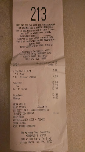 Read moreI have never left a review for McDs because it’s McDs, you either like it or you don’t 😆! Today though, we ordered on our lunch break for something quick, ordered ahead of time to grab and go, simple right? Gave them my order #, waited 10 mins, finally they came back and said they didn’t have our order. Hey, not their fault, they’re just one of many workers, but they said they’d get their manager. The manager came over and explained something to the effect of “the order didn’t come from your phone so that’s why we didn’t receive it, it uses geo tracking”…odd how they received the order just at that same moment then right, especially considering the phone it came from was still in the same spot, miles away! After another few minutes, the order came out, at this point I had been in the store waiting for ~20-25 minutes, which would be long if there were anyone else inside waiting (the drive-thru was long, I get that! But that’s poor management to have no one in FOH), I asked the manager if something could be done regarding a partial refund, to which she snapped back and said “there’s no way I’m giving you a refund, we made this order in 3 mins” and then I countered that the order should have been ready when we were quoted on the app to which she interrupted me and said “it’s not our fault that the order didn’t come through, but I’m not refunding you”. I find it ironic, laughable, and frustrating that a manager clearly cared so little about her job and the customer that her response was to be so aggressive and standoffish. Hey, that’s okay there’s 100 restaurants I can go to and after games, when my team orders out, we’ll...