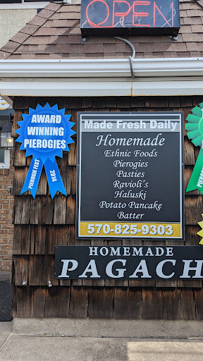 I live 60 miles away, but while traveling up Rt 81 heading home, I discovered this hidden gem in the Polish section of Nanticoke/Wilkes Barre. Growing up in NJ, we used to go to The Pierogi Factory, which was in a renovated large garage behind a house in Wallington. There sat three or four grandma's, aprons on, and they made tray after tray of fresh pierogi's. Well, I just stumbled into a similar place, but it's in a house! Dad, and two of the kids making lots of varieties of nice sized, fresh pierogi. There's all the regular standbys, plus many, many others. I bought sauerkraut, potato extra cheese, fresh Halupki ( OMG soooooo good!), and a nice ring of kielbasa. They also make fresh stuffed cabbage (gwumpki), packaged and ready to go. Their prices are good for fresh homemade products. I'll let you know once I try the kielbasa at home how that was. (Tried and very good.) I already know that my car will automatically turn off the highway every time I'm traveling nearby and stop here for some fresh Polish items to bring home. Parking is right up front. Paul took care of me and was very friendly and helpful. Folks, stop here at this Mom and Pop Pierogi store. I think you'll be glad you did.
