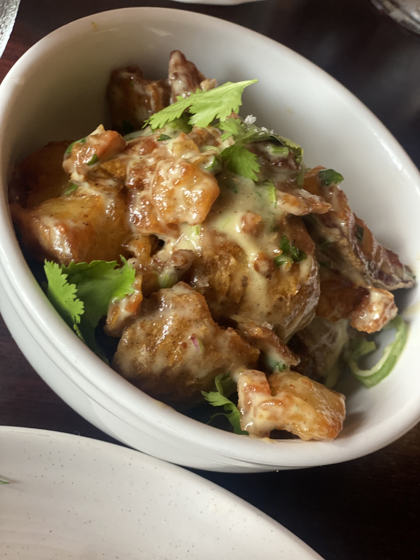 The reviews showed the chicken and waffles was a great choice! (Last photo I attached was from a previous review) The photo sold me and was one of the reasons I decided to try this established . I ordered that along with a side of the fried potatoes and avocado toast. When they brought out my plate, I was shocked. My waffle was burnt. Which first caught my eye. I didnât want to cause any issues so I tried eating it. Thatâs when I realized that they served me frozen fried chicken. The kind that you get in the frozen aisle at your local supermarket!(photographed below) They neatly displayed said chicken on the burnt waffle! Bad enough the chicken wasnât fresh, the skin was lukewarm and cold on the inside! I didnât think you could mess up avocado toast. But they somehow managed to as well. The avocado âtoastâ wasnât even toasted for starters. Also, they made a avocado like cream , instead of it sliced or mashed onto the bread. But then they had added sliced radishes all over it. None of this was listed in the description. I will say, the potatoes were delicious! They were unique and not a typical breakfast potato. They had a garlic aioli with sliced jalapeño which was flavorful! Another positive not was the complimentary sausage they served us. They also gave us complimentary deviled eggs. The taste was odd. But I wouldnât like to stress I didnât order it. So I wasnât upset by the odd flavors and texture. From the drinks then onto the starters and entrees, everything got worst! For a table of 6, 5 of us had issues with our meal. To make it worst it was a birthday celebration. All in all, this has the style, decor and service of an upscale establishment but the food is more aligned with Applebeeâs. I do not recommend this establishment,...