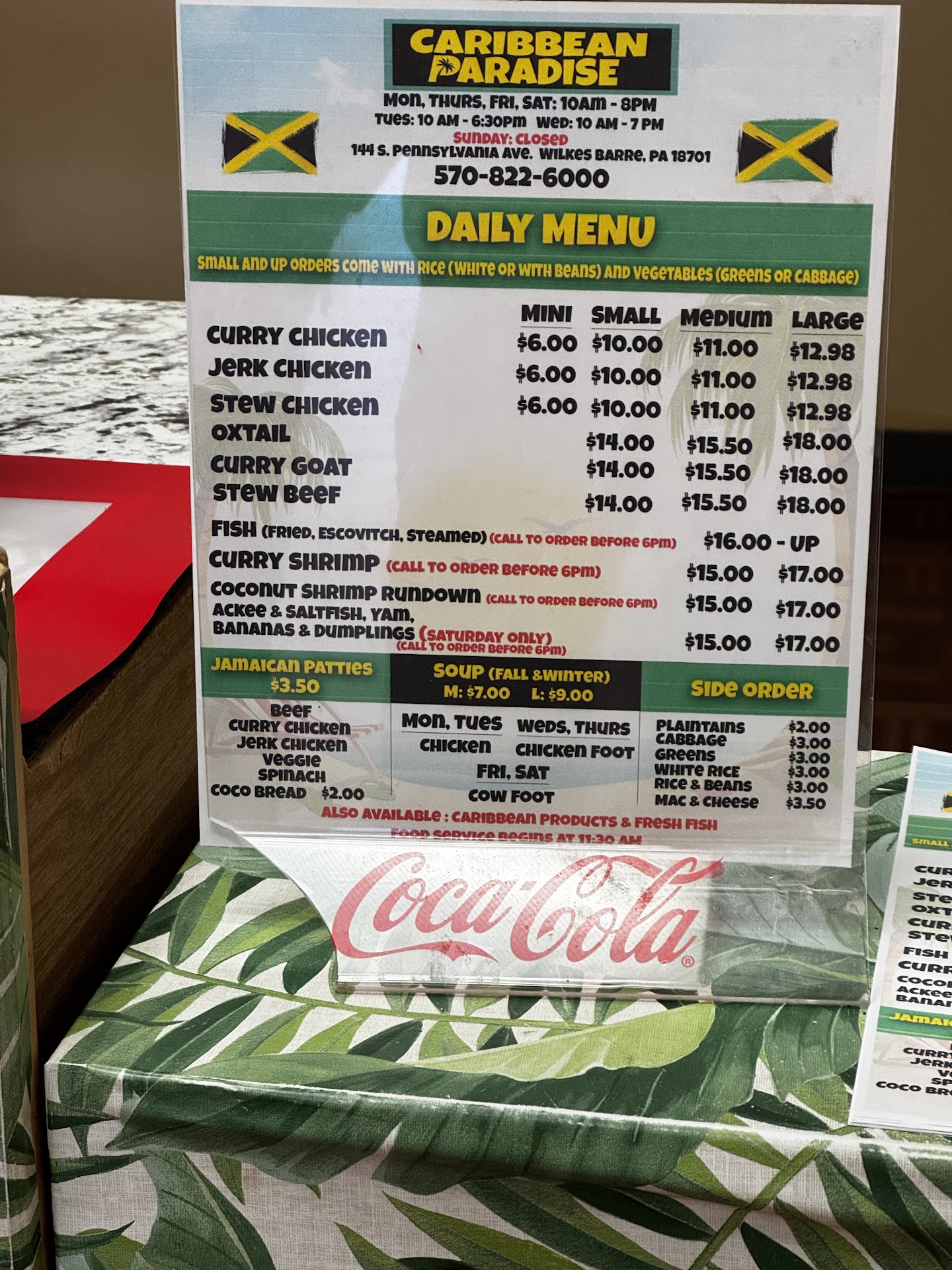 Read moreGood food, and good quantity, at really decent prices. I really wish I lived closer to supporting this business. There is NO inside seating. If your ordering more than 1-2 dishes, I would advise calling ahead to place the order as they are a small operation. I really enjoyed the food. Ordered the Medium Jerk Chicken with rice and peas (beans), greens and jerk sauce over it all! 🤤 very tasty They also have some unique import food and drink items on the shelves inside. See the picture of the menu for items available as of this...