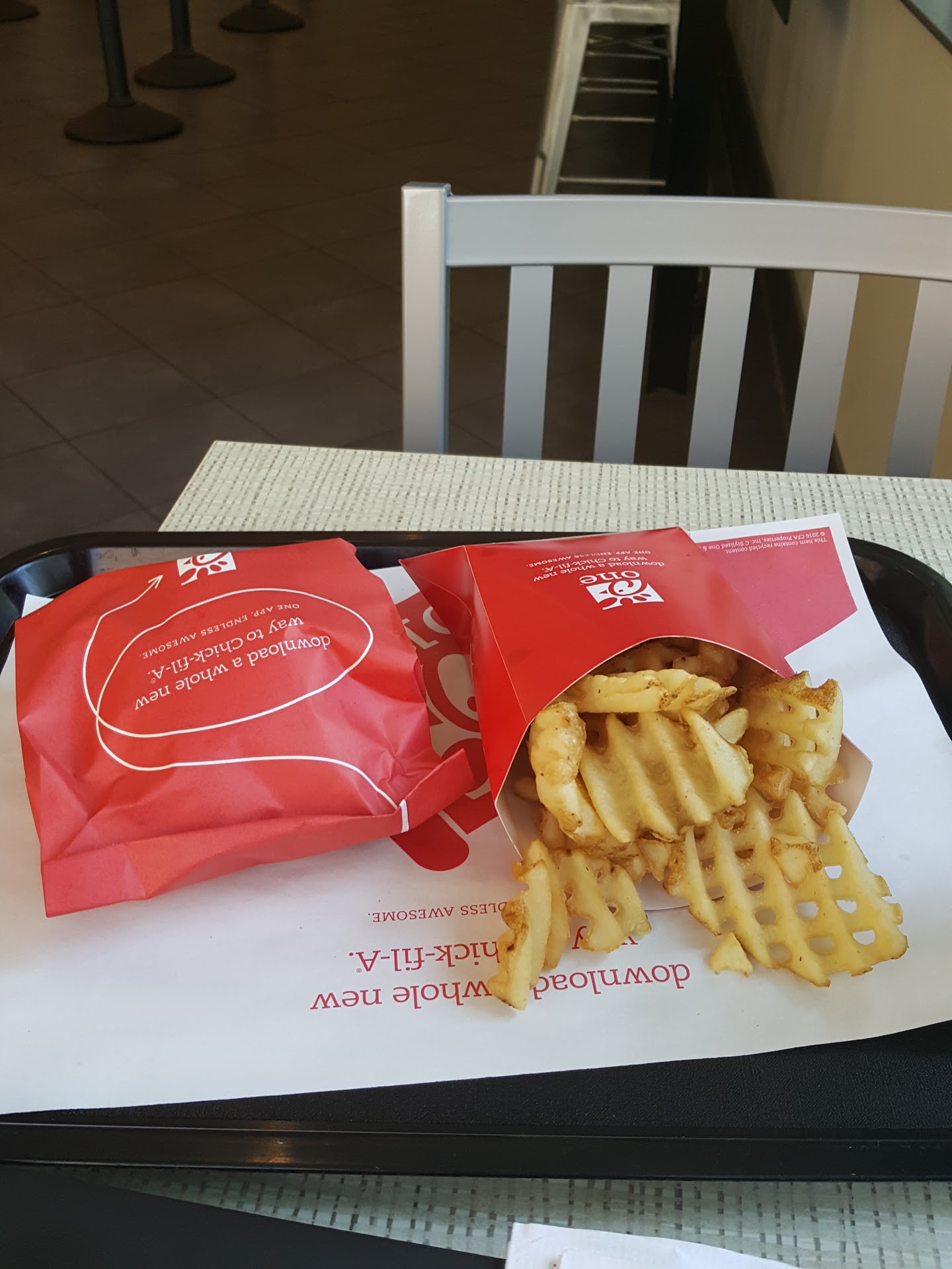 Read moreBest fast-food. Amazing chicken sandwich. Priced like any other fast-food place despite having significantly better food. Wait can be on the longer side, seems like people they know can walk up and order after you yet somehow magically get their food before you despite having the same order as you(mostly everyone just gets a chicken sandwich and waffle fries). Despite that, still 5 stars. Better than any other fast-food place where you can be the only person inside and wait 10 minutes. Go some places and the staff will be having the time of their life chatting and laughing away instead of making your food. Here they actually seem to be...