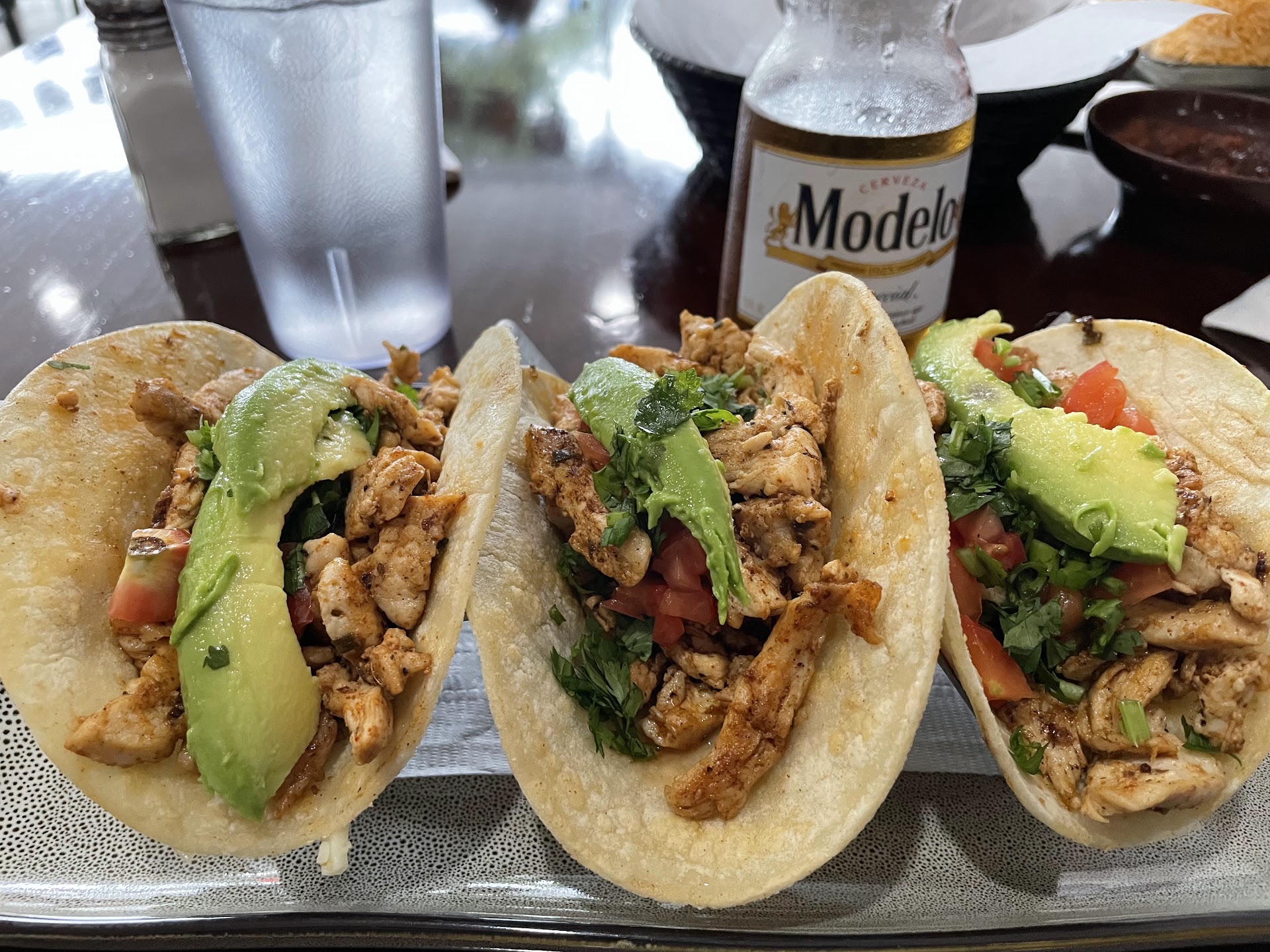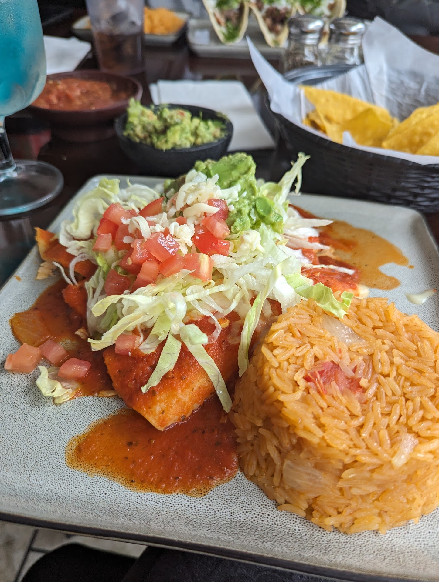 Read moreAt first glance prices seem high. We ordered the chicken enchiladas dinner to split. It came with Mexican rice, 3 enchiladas and a small guacamole salad and a nice size dish of tortilla chips and salsa, which was refilled at no extra cost. The enchiladas were a nice size so we were able to split them and felt very full afterwards. The cost was $14.00. So when you figure the portion size it was a very good deal. The table next to us ordered the burrito dinner and the burritos were HUGE. I've never seen a burrito that large and stuffed so full before. Each dinner had one burrito and an order of Mexican rice. I think that dinner was $16.00. Again, considering many people could split one burrito and have plenty to eat makes the price very reasonable. Highly...