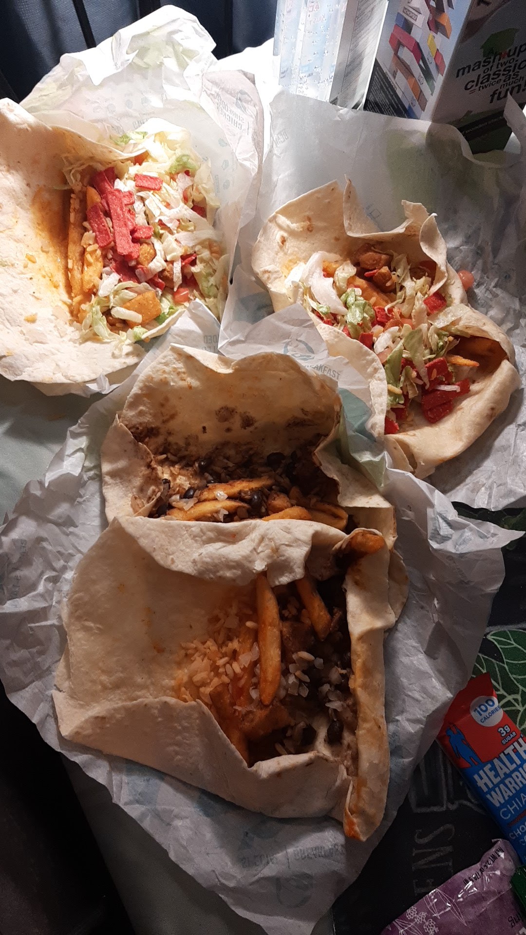 Read moreSo they lost my order and then the female manager argued with me about it until I showed her the receipt on my phone. They grabbed my phone and passed it around with their gloves on and got it greasy. The first photo has the burritos that we ordered. The ones in the back are what first came out and then my boyfriend went back in and the bottom ones are the next ones they gave him. When he went back in she yelled at him for coming back. To top it all off I never got my cinnamon twist, we got the wrong drink twice, the nachos didn't have extra meat and the taco had sour cream when we asked for it without. I paid over 20 dollars and absolutely everything was done wrong. Twice. He then tried to call them and speak with the manager and they wouldn't answer. We didn't go back in because the manager told him not to come back in when we tried to get...