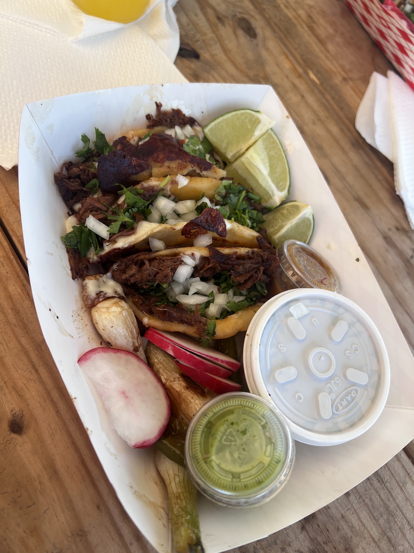 Read moreThis food truck is going to become one of my favorites! The truck is easy to find and if you want to eat there, they have benches you can sit on. Today I ordered an order of steak tacos, two orders of birria, the papas locas, two horchatas, and a flan for my family and I. The customer service was spectacular, one of the best I’ve experienced in the area. The food was incredible. The owner told me that she makes everything by hand with help from her family and you can tell by the taste of the food. The food was also ready quickly and stayed hot until I got home. They also gave me a Mexican dessert to try out since I had never had it before. These people were literally one of the kindest individuals I have come across in a long time. I will be returning of course, as well as telling everyone I know of their food truck. I wish them a lot of success in their business,...