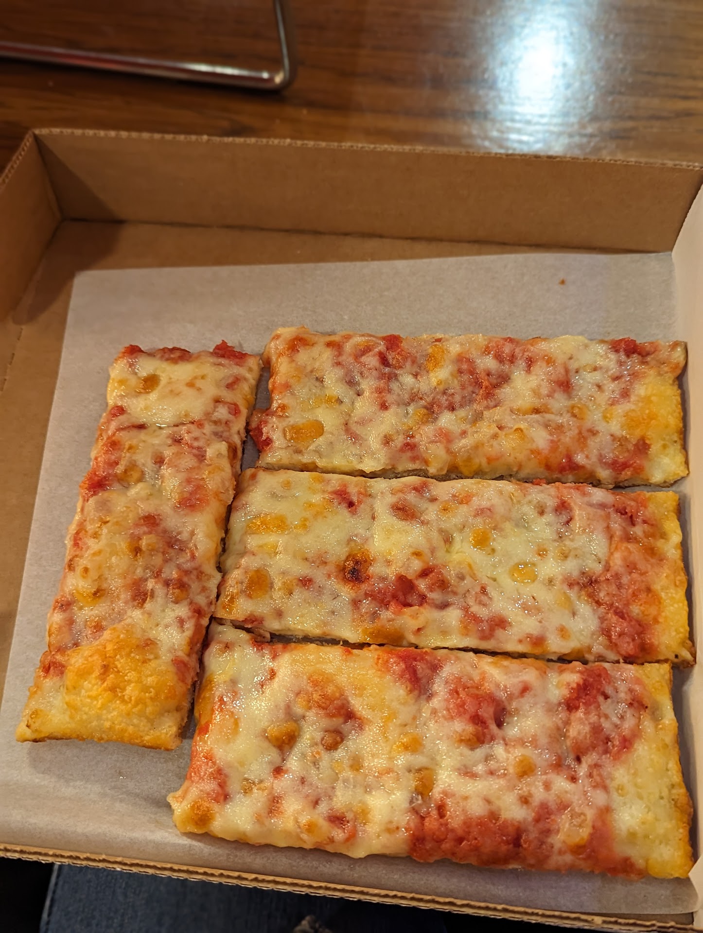 Read moreOrdered a tray of their red Sicilian. They were nice enough to ask with or without onions. They unfortunately do not accept credit cards over the phone or google pay,(i have a credit card with only the vitural card for online payments or google pay) they do accept apple pay for those who use that though. When I walked in I was greeted promptly, asked for a couple napkins and plates and she gave me some and then asked if I needed more cause she only grabbed 3, but 3 was enough lol. I walked about 5 mins to get and after I walked home it was still nice and hot even though it's cold outside. Pizza was delicious and so reasonably priced. Sunday special tray of red (14 slices) came to $19.07. My only regret is that I'm going through some stuff and I'm low on funds and can't try more of their food on Wed when they're open again. A+ 5 stars. Thank you for the great food...