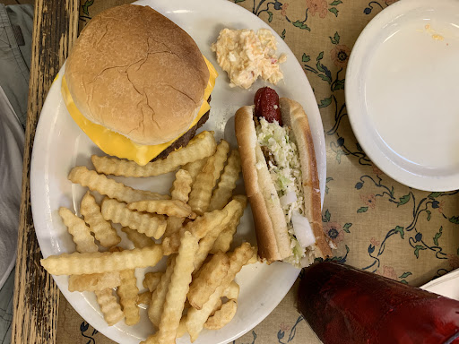 But pretty soon after diving into my cheeseburger, hot dog all the way, fries, and sweet tea, I found myself somewhat distressed...almost alarmed. I wanted it to be amazing! But, alas, the food just wasn’t very good. The cheeseburger was dry, dense, and bland. The sweet tea was severely watered down. The hot dog was also bland. The slaw was ok, but the chili was a major disappointment—big chunks of ground beef with no chili flavor at all. Hot dog chili should be chopped very fine and should taste like....well, chili. I don’t think the cook even waved a bottle of chili powder over the ground beef much less sprinkled any on it.