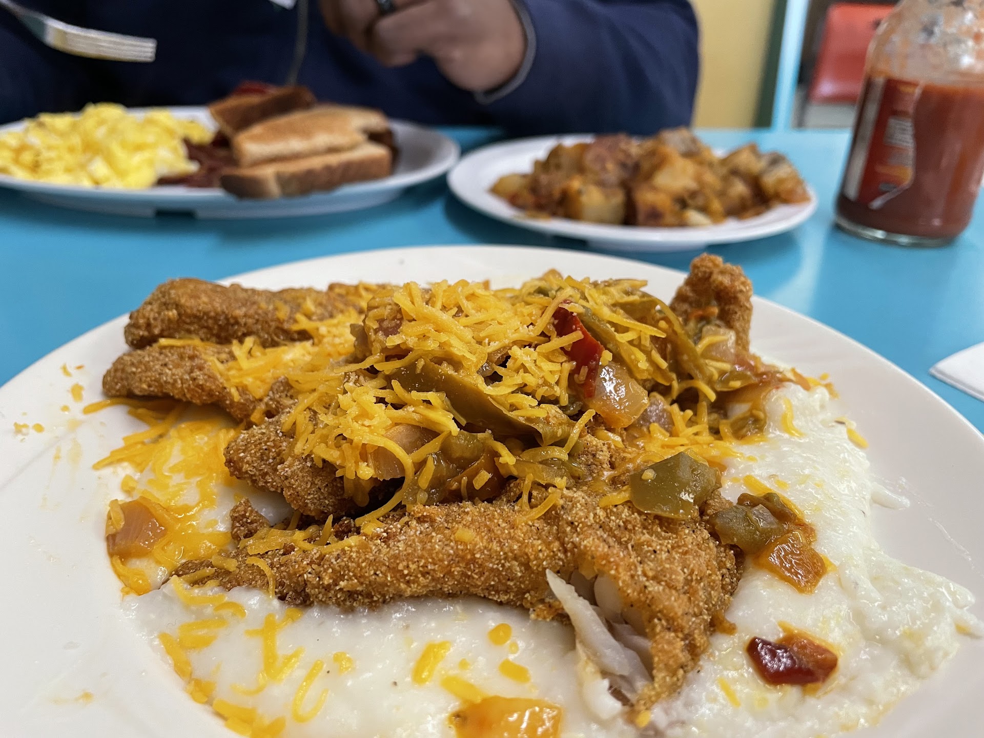 Ā Ā Ā Read moreI had read such promising reviews on this place and was very excited to support a local brunch eatery and not a chain restaurant but my very was mostly underwhelming. And trust, I wanted it to be good. The first was okay..there wasn't alot of follow-up on on refreshing our hot tea and the food was lukewarm. When I do breakfast, hot is SO IMPORTANT TO ME. The food was good even though it was warm to cold. I ordered the corn beef hash and smoked turkey plate with scrambled eggs and an a la carte pancake. The table was sticky as was the condiments. I eat at Waffle House on a regular so I could've forgiven that if the food was banging and unfortunately, it wasn't. The table busser guy was very inattentive and was having a conversation on his phone while taking up the plates on an adjacent table but it made him very inaccessible for questions about the food. I'll be back because I'm thinking I just caught them on a slow day or short staffed or something. I visit pretty regularly with a kid at CMU. Until...
