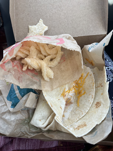 Read moreI would avoid this Taco Bell like the plague. I ordered 2 steak tacos, bean burrito, and a cheese quesadilla. When I got home, I found a cheese quesadilla and two orders of churroes! I called and I wanted my money back. I spoke to a supposed manager that only offered excuses. I let him know his staff should check the order before handing it to the customer. Never any I am sorry for the inconvenience for having to go back to the place. I do believe the manager needs some training in how to be a manager. That way hopefully the staff can be trained. He did not say one word to me....my parting comment was I am sorry would have been nice. Avoid this place and go somewhere were you can get what you ordered. They lost a customer! They probably don't...