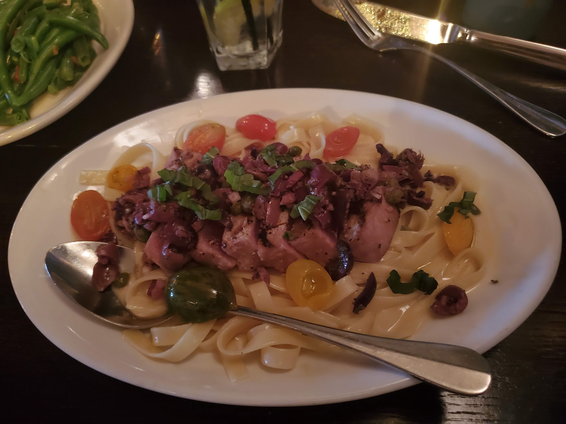 I first came to Café Calamari in June of this year. Immediately, after taking my seat at the bar, which is very elegant, I was treated by Don, the manager, as a recognized local patron. He took great care of me, brought me delicious food, and treated me like I was the only guest there. At the end of the evening, he treated me to a flaming Sambuca, which I never had (no restaurant I’ve dined at since is willing to make one). That same night, Don gave me permission to stay overnight my 40-foot motor coach in the parking lot. My mention of this is not a suggestion that visitors request this because it’s easy for one to overstay his welcome with something so large, but it was yet another unwarranted gesture of hospitality.