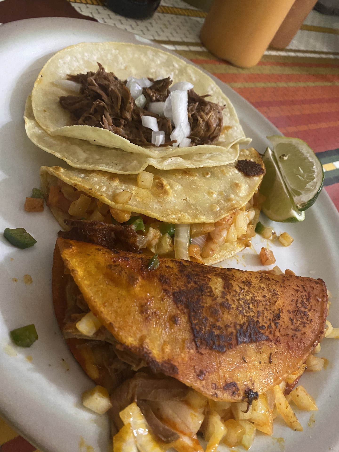 Read moreI love Mexican cuisine and eat in Mexican restaurants around the world all the time. I honestly don’t know how this place is getting so many 5 star reviews. All the food we ordered in this place was not just not tasty, it was impossible to eat! I have never had “bad” Mexican food; this is my first negative experience. In that restaurant, the food we ordered was either WAY too salty and therefore completely inedible (both salsa options on the menu!). It was like eating teaspoon of salt, and we love salty food! Or, it was extremely sweet (the drinks) to the point that it begs water to accompany the drinks. Or, it was completely bland and required a lot of sauce to spice it up (beef tongue taco). The red sauce in their special chicken enchilada was so terrible and there was so much of it, it completely spoiled the dish. The amount of rice in the dish was laughable. I eat very small portions and the amount of rice in this dish barely filled two full tablespoons. Finally, the service we received almost made us leave within the first 30 min. There were 3 ladies who came to “take our order”, separately. Then we were completely forgotten for 20-25 min. No water, no table set up, nothing. I asked if their special salsa was intended to be that salty. The suggested another one which they said wouldn’t be as salty, yet it was exactly as salty as the other one. The only reason I’m not giving this place one star only is that they hadn’t charged us for the salsa in the end. I hope my experience is a one time thing and doesn’t reflect the usual quality of the food there. But I most certainly wouldn’t give it another...