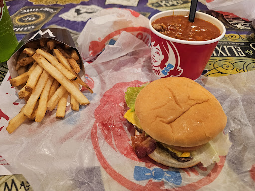 Read moreAbsolutely love Wendy's. Never had an issue with any Wendys. This was our first and last time visiting this Wendy's. Very dirty. Ice all over floor, floor slick. No one cleaned it up the hour we were there. Prepared our baconator fries first sat them on the counter, got our sandwiches 15 mins later. The reason we got our sandwiches late, they started they handed then out the drive thru window. Fries were ice cold. One sandwich was wrong, took back to the counter and the woman says "I knew that was wrong.". Why send it out then? Ate, went to the counter for a Frosty. waited in line with one person in front of me. The woman taking the order was also preparing food with gloves on, came back to the counter flipped her hair out of her face with her hands, took the lady in front of me order, cashed her out and went to prepare her food.All with the same gloves on. We immediately left.