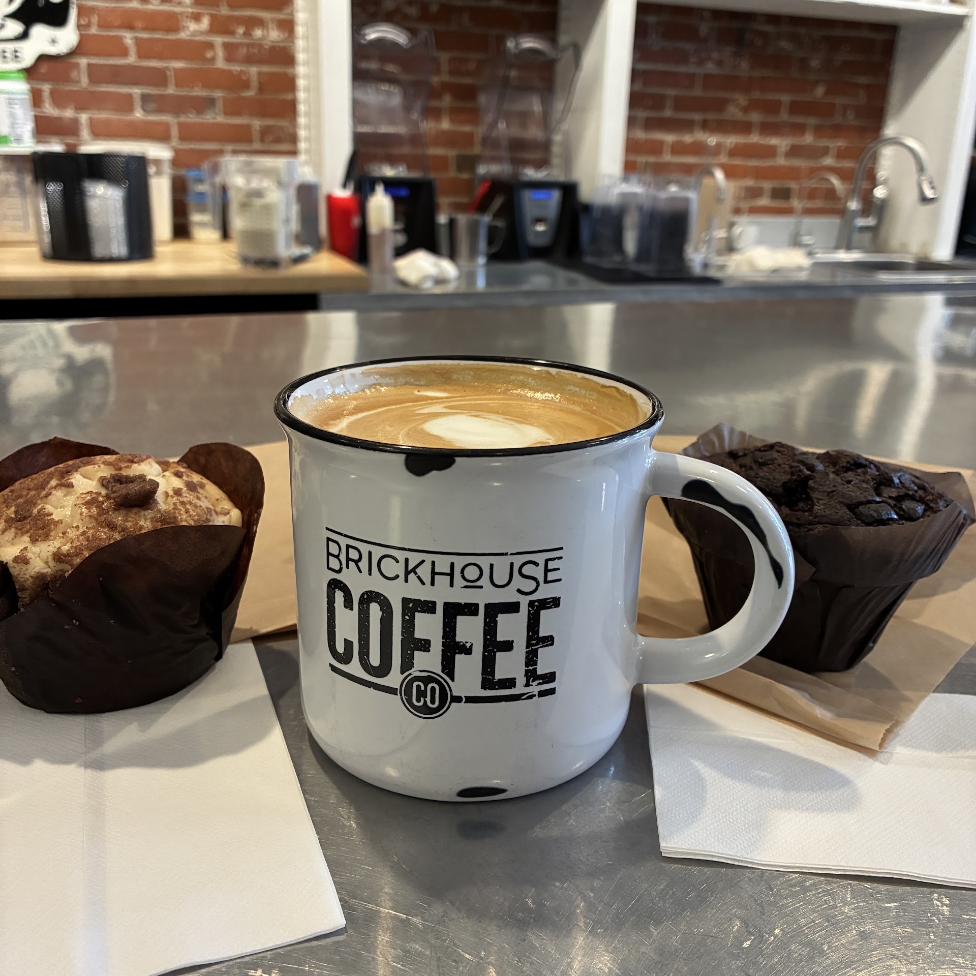 Read moreIf you find yourself looking for a great cup of coffee in a charming small town along I-80 in Iowa … stopping at Brickhouse Coffee in Williamsburg is a must. It’s a short drive South of the Lincoln Highway, located in the quaint town square. The inside has been tastefully restored with exposed brick walls and high ceilings with a few stools at the old counter. But more to the point, the coffee was perfection - both my Mocha (just the right balance of chocolate to coffee, not too sweet) and my husband’s cappuccino. The muffins were moist and delicious. It’s worth a short detour and will keep you going!...