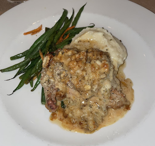 My husband’s ribeye steak was grilled perfectly to his preference, medium rare, topped with a tornado of crispy fried onions, and paired with a heaping serving of fluffy mashed potatoes and grilled fresh asparagus. My husband’s mouth watered with each and every tempting bite of his ribeye steak, and I’ve never seen him so happy to have a plate in front of him. My crab cake entree featured two all jumbo lump meat crab cakes, garnished with a slightly spicy remoulade, and teamed up with herb roasted potatoes and garden fresh asparagus. The crab cakes were an unparalleled coastal delicacy, with each bite sending my taste buds on a blissful vacation. The herb roasted potatoes ruined me for all other forms of crispy potatoes in the future.