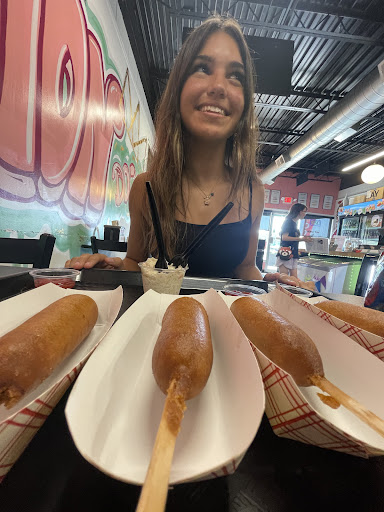 Read moreToday… as my friend and I drove across the state, all that filled our minds was the stabbing pain in our stomachs and the jab of hunger—nothing else existed but our corn dog cravings. I searched and searched desperately looking for a restaurant, any restaurant selling corn dogs. We stopped at many a store but only left with sand in our shoes and disappointment in our hearts, with no sign of a single corn dog. Then, just as hope was fading, we stumbled upon the one and only Dominion Dogs. As we walked in, a kind woman greeted us at the door. The service? Impeccable. She seated us and took our order right away. We excitedly awaited our divine dogs, chatting excitedly as the delectable aroma of golden fried goodness drifted to our noses. Soon, our waiter emerged from behind the counter, seemingly glowing, carrying a heavenly platter of four beautiful corn dogs. Our first bite went a little like this: the golden crust gave way to soft, pillowy dough, wrapping a perfectly salty hot dog. Every bite was a symphony of flavors—a true slice of corn dog heaven. Just as we were finishing our four dogs, the voice of an angel asked if we wanted eight more tots. And boy, oh boy—the little corn dog bites? Dangerous. You pop one and suddenly the whole basket is gone. Addictive doesn’t even cover it. That lunch didn’t just leave us satisfied—it left us feeling like we had experienced a true taste of corn dog paradise. Not to mention the price of only $2 a dog! Just writing about it makes me want to go back. If any dog lover is near Dominion Dogs, don’t walk—run. Bring your appetite and maybe an...