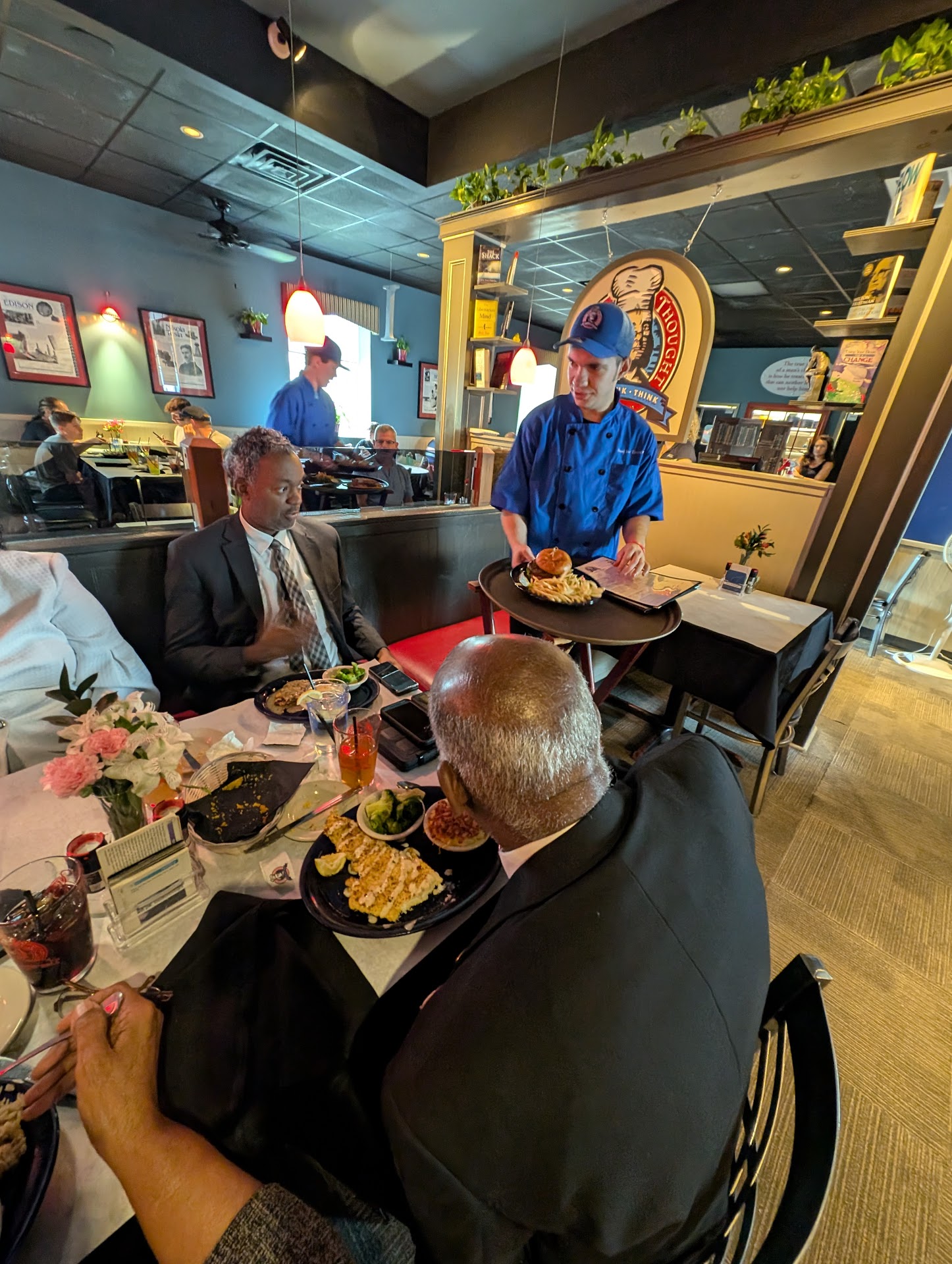 Read more2024 July 7 we had a 2:45pm reservation, we arrived around 3pm, parking lot was almost full, parked our vehicles and by the time I walked in, we were being seated, so no wait time to sit down from what I experienced. Our group of 20 people were seated at 3 tables. 2 different servers. The table that was seated first received their drinks and entrees first. The other 2 tables were a bit slower ordering, sitting down and getting our drinks and entrees. While eating, the manager came to speak to us; a very attractive lady wearing a nice dress. My wife felt a bit rushed by the waiter/server because he preferred to take the orders from one side of the table and go around the table in a clockwise motion and my wife had to deal with our daughter that was not feeling well during the time of taking orders. The server warned us that he got another table and must take our order immediately. My opinion, the food was good and the service was good but the server didn't have to backtalk my wife, the customer is always right. It seems as though we were in and out a few minutes over an hour.