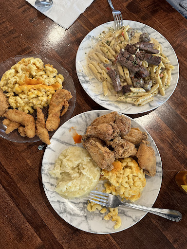 Read moreOMG! my family and I live in upstate NY and here on vacation…we like to go where the locals eat when we are on vacations…. After multiple failed “lunch spot near me” google search’s, I gave it one more go… up pops a picture of chicken wings, Mac n cheese and collard greens…. Plenty of stars so we put it in the GPS. Pulled up to a small 5 or 6 store front strip… ok…. We are still going. We are exhausted, want to sleep and go check in to our hotel. There wasn’t too many people there however they seemed happy. See picture to see what we ordered…. There was not one thing we didn’t like. The Steak pasta was AMAZING!! The chicken wings were crispy and full of flavor. The Mac n cheese.. homemade baked and scrumptious. My 9 year old cleaned his plate, ate off mine and my husbands… then asked if we could come back tomorrow! The answer is YES! If you are looking for elegance don’t bother. Hit up this place and enjoy every morsel put...