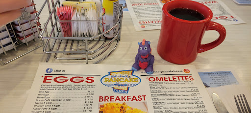 I went here with my husband for the first time by recommendation from the locals. The place was busy which usually indicates that is good.I had no problem waiting longer than they had told me. Sat down, our server was pretty friendly and gave some recommendations. The food was just okay and the portion of my skillet was much smaller than I anticipated especially for the price. They do not allow substitutions and charge you extra for anything that you add even if you omit an ingredient. The prices are higher than average for just mediocre food. The coffee was also very watered down. As I was eating my skillet, I mentioned to our server that I wanted an opportunity to at least taste the pancakes at the pancake house and ask if there was a smaller option that I could purchase. He recommended buying the silver dollar pancakes that were on the children's menu. They were $6.95 for literally only 5 mini silver dollar pancakes (nothing else) And so I agreed ,after eating about 2 of those silver dollar pancakes.He comes back out to the table and says I apologize but my manager has indicated to me that I must charge you an additional dollar because you're not a child and apologized for his mistake, as he did that, his manager pulled her head out from the kitchen and yelled across to our table with customers sitting in between emphasizing, what he was stating to us. It was totally embarrassing, unprofessional and unnecessary. I expressed to him that I felt that should have should have been dismissed as a mistake on his behalf and a lesson learned for the next time. At the end, I paid our full bill, including the $7.95 for the mini pancakes and tipped a full 20% because he had no fault in it, but they have definitely lost a...