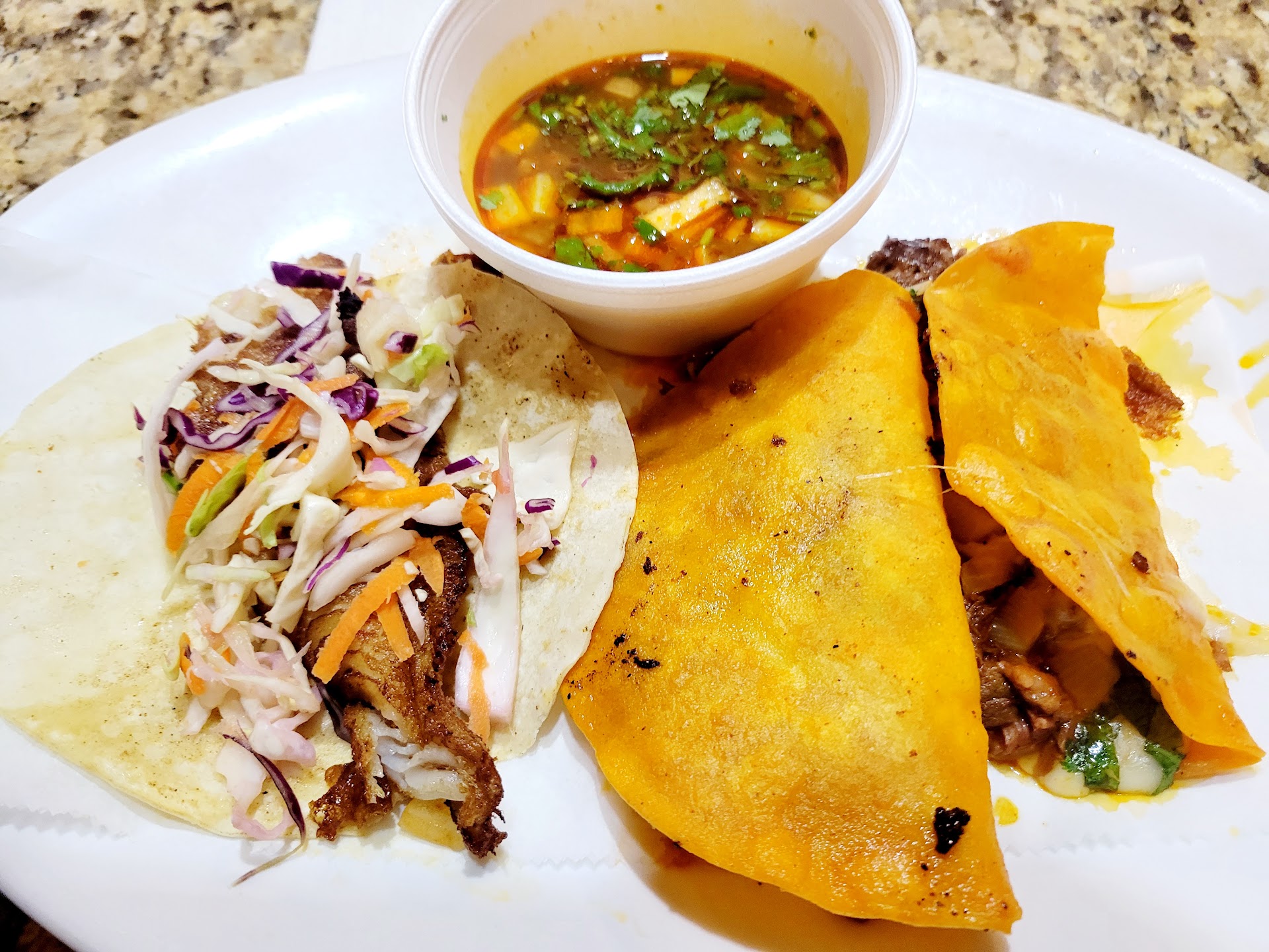 Food was good, but the server didn't understand what we were saying and she brought the wrong dinner. Our 90 year old friend said she couldn't eat a big dinner and she really just wanted two tacos. She didn't ask how much that would be but assumed it would be less than the 3 taco dinner. Server didn't ask her if she wanted rice and beans. Then the server brings the food and she has 3 tacos on the plate. She said she only ordered 2 and the guy who brought the food said "just keep it". 5 minutes later the server comes over with a plate and says to give them one of the tacos. We did that. When the check came, she was charged for the 3 taco dinner. So, we questioned the bill and the server said the price is the same. We said "if the price is the same, why did she come and take one of the tacos away?" She then said well each taco is $5 and then it's $5 for the rice and beans. But, she didn't order rice and beans! But the server said she ate some of it. Well, she didn't know that the rice and beans didn't come with what she order. Server was still not going to fix it, so I went to manager and explained. She seemed like she wasn't inclined to fix it either, but I was very insistent. She did finally fix the bill. The whole thing was so stupid!