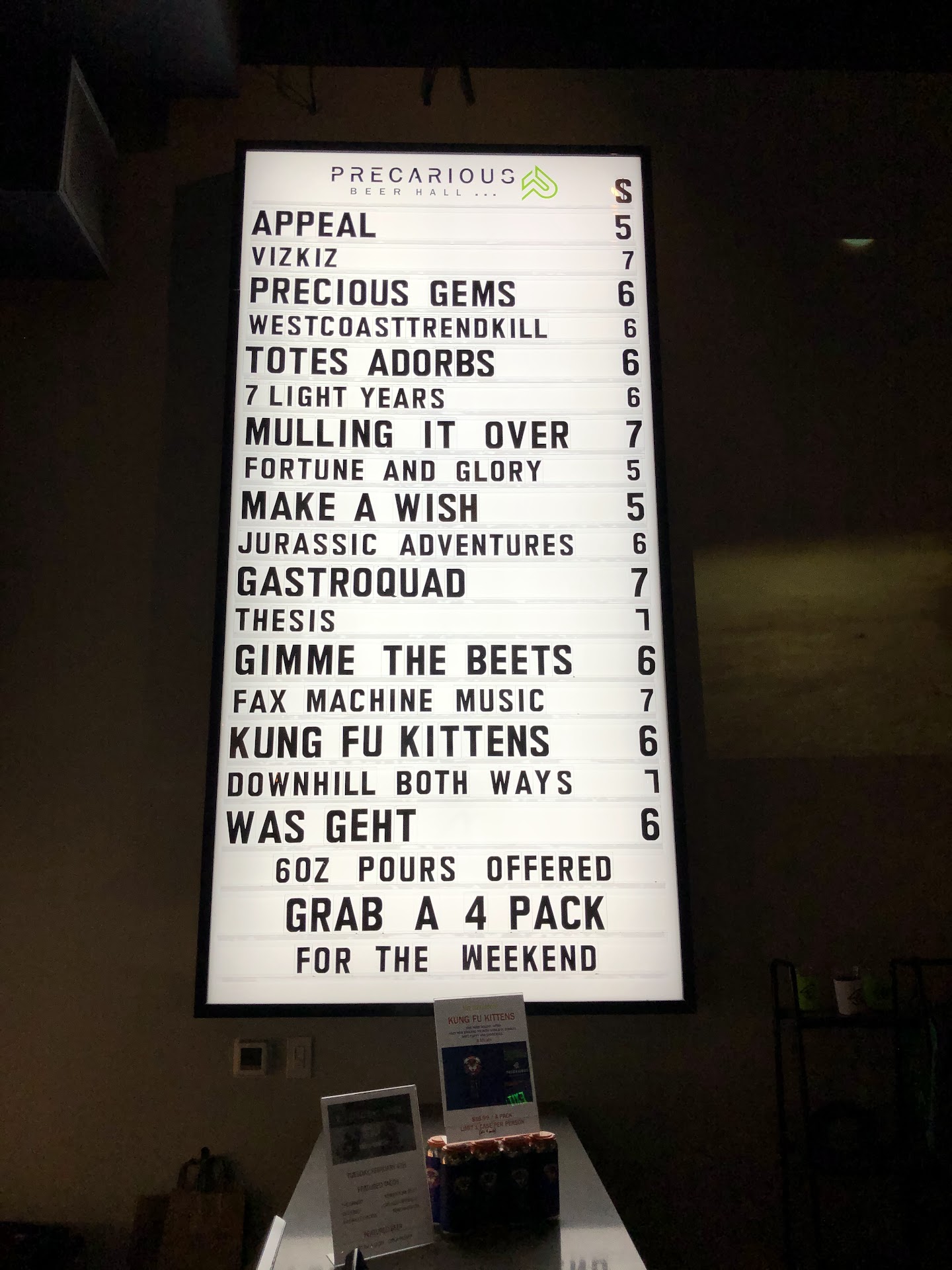 Have been going to precarious since they opened, it was a fun new spot and the beer was good. It is clear that they have some issues going on, the quality of their beer has dropped notably, the food is expensive but at the same level as tbell or wendys, and more importantly their customer relations is abysmal. Participated in an 8 week trivia tournament there, spending hundreds of dollars on their overpriced beer during the span of it, so did the rest of our 6 person team, and so did every other team that participated. At the end of the tournament which they were sponsoring the prizes for, they revealed that first place was a shirt, second place was a hat. Not even special ones, we watched the manager grab it off their merch rack. Mind you these were teams of 6+ splitting a single shirt after 8 weeks. The only reason people were doing the tournament is because the previous year VBC hosted and the prizes were whole vacations paid for. Maybe money is tight, but somehow they still have money to put in 3 new LED screens for digital posters every time we go. They even pulled the rug on the mc who thought they were gonna have actual prizes to give out. Itās not all bad though, service seems to be really good if youāre under 21 though because they keep getting busted for serving minors, then get in trouble with ABC and take it out on their regulars by being grumpy and snippy. Donāt waste your time going here, go to VBC, Billsburg, or Aleworks, better beer and waaay better service. Not sure where the issue lies, Amber Ox which i think is under the same ownership used to be mediocre but has only gotten better and better over the years with great food quality and awesome service these days so itās probably just a middle management issue, maybe the manager pocketed the money for the prizes without the owners knowing, just seems weird that one location is filled with all-stars and the other is filled with benchwarmers, the difference couldnāt be more night and day.