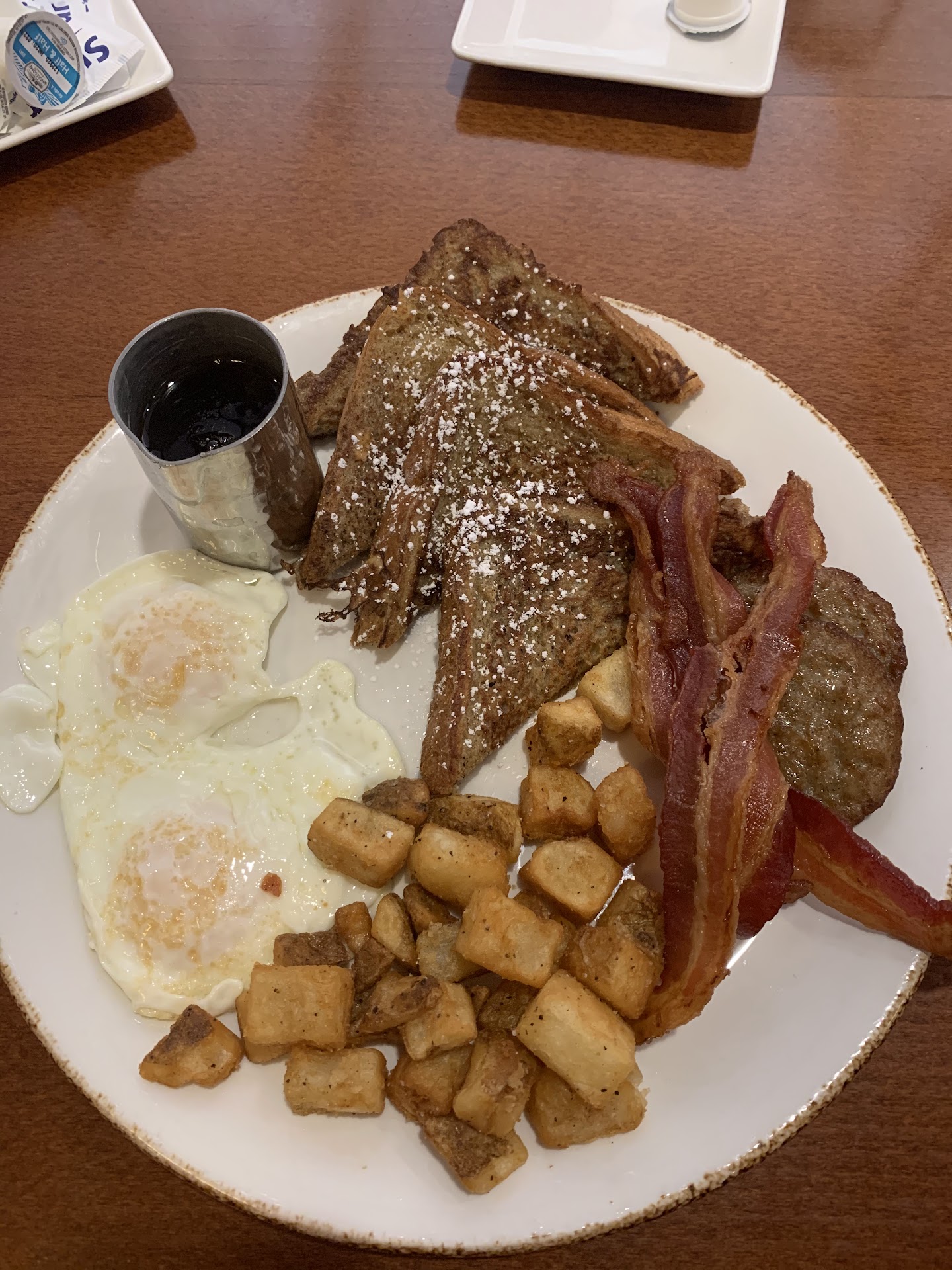 Read moreDo not go there unless you plan on spending your whole day waiting. We were on vacation with the kids. Wanted to grab a quiet cup of coffee with my husband before trecking through town with the family: First we were told there was a 10min wait. After about 20 min we had them change our reservation to takeout. We get a $25 credit per day to use there, so we order 2 coffees and 2 cups of oatmeal (total of $28!!???) There's another 20 min wait for that. So we get the kids from the room to get ready to hit town, only we wait for another 20 min to get our order. When I picked up the food container it felt wet on the bottom. Why?? They poured the oatmeal right in the bottom of a paper takeout container - the kind you would put fries in. The whole thing looked more like dog food than a $28 dollar breakfast. Ended up returning the order, had the waiter refund the price. Will never come back here! We wasted almost 2 hrs on nothing! Giving one star only because they...