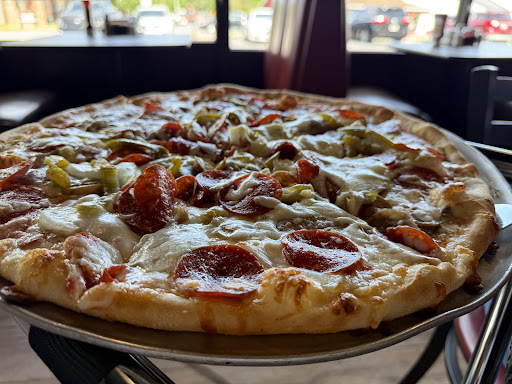 1st time visit. Restaurant was very clean and staff was very nice. Ordered 2 LG. pizzas for dine in. 1st green pepper and spinach 2nd green peppers and sausage. Pizzas came out fresh and hot. 1st thing I noticed was the nice crispy bottomed crust. It had a light and delicate flavor with a chewy center. Absolutely delicious!!! The cheese is high quality - could stretch for a mile! The sausage was plentiful and VERY tasty and spinach was fresh! The green peppers seemed like maybe they were lightly pre-cooked but still good. For my taste, I prefer them freshly sliced. The topping were displayed beautifully and very appetizing!