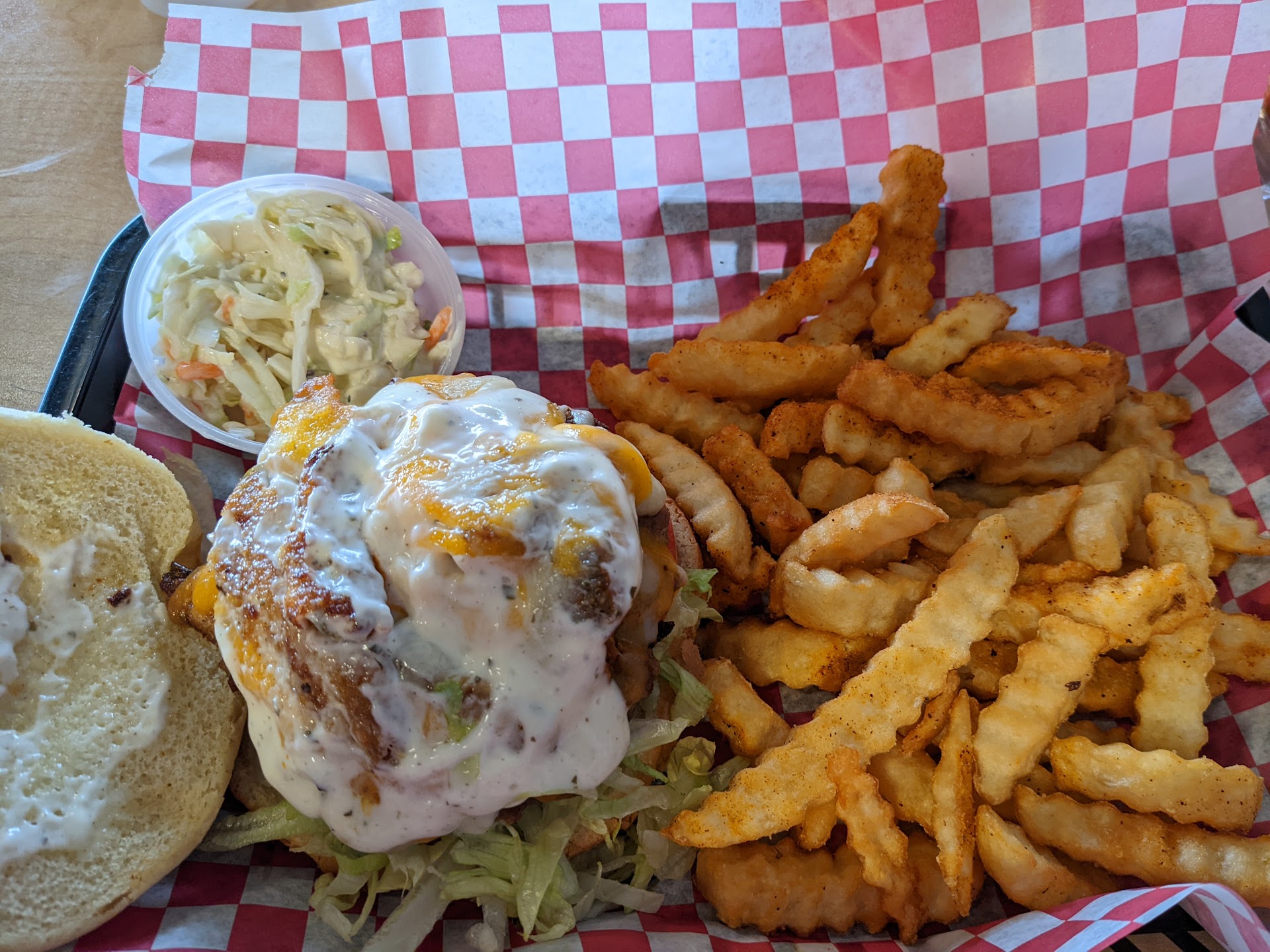 Read moreWe moved to the Belton area last year, and Raine's was one of the first restaurants we tried. I got the Raine's Burger with sweet potato fries. My dad got the same thing, my mom got the salmon filet, and we got mushrooms to share; The food was satisfactory. Unfortunately, with each time we got Raine's, the food slowly got worse. Recently, we had an experience that made us decide not to order this food anymore; the mushrooms were 99% water and salt, and everything else was painfully over-salted, to the point where nothing could be tasted, and the salt burned our mouths. The whole meal was like "would you like some food with your salt?" None of my family liked our meal, and we didn't even eat it all (except for the sweet potato fries, which were still pretty decent). The whole thing could've been a fluke, but the steady decline in quality, followed by the above experience, has deterred us from ordering...